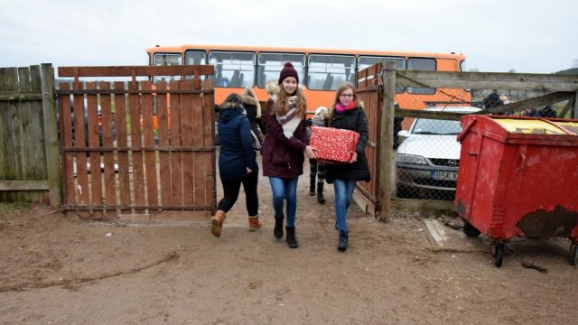Zwieńczeniem akcji było wspólne przekazanie zgromadzonych prezentów. Wszystkich zaskoczyła ilość zawiezionych darów, co jest tylko skromnym świadectwem wielkości współczujących serc osób. Goście zostali oprowadzeni po schronisku i zapoznani z jego codziennymi potrzebami i problemami, zaś młodzież w tym czasie miała okazję do wyprowadzenia psów na spacer pod czujnym okiem wolontariuszy prowadzących schronisko: Wioletty Ciostek, Edyty Doroszko, Elżbiety Jadkowskiej, Elwiry Zabłockiej i Justyny Ignatowicz.