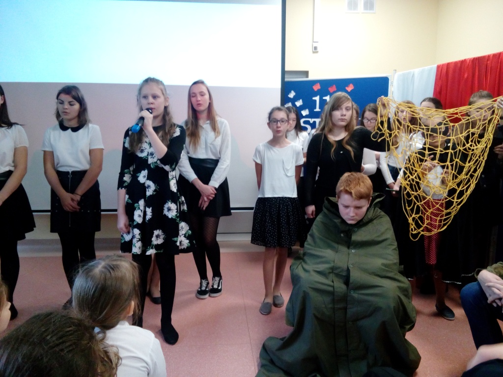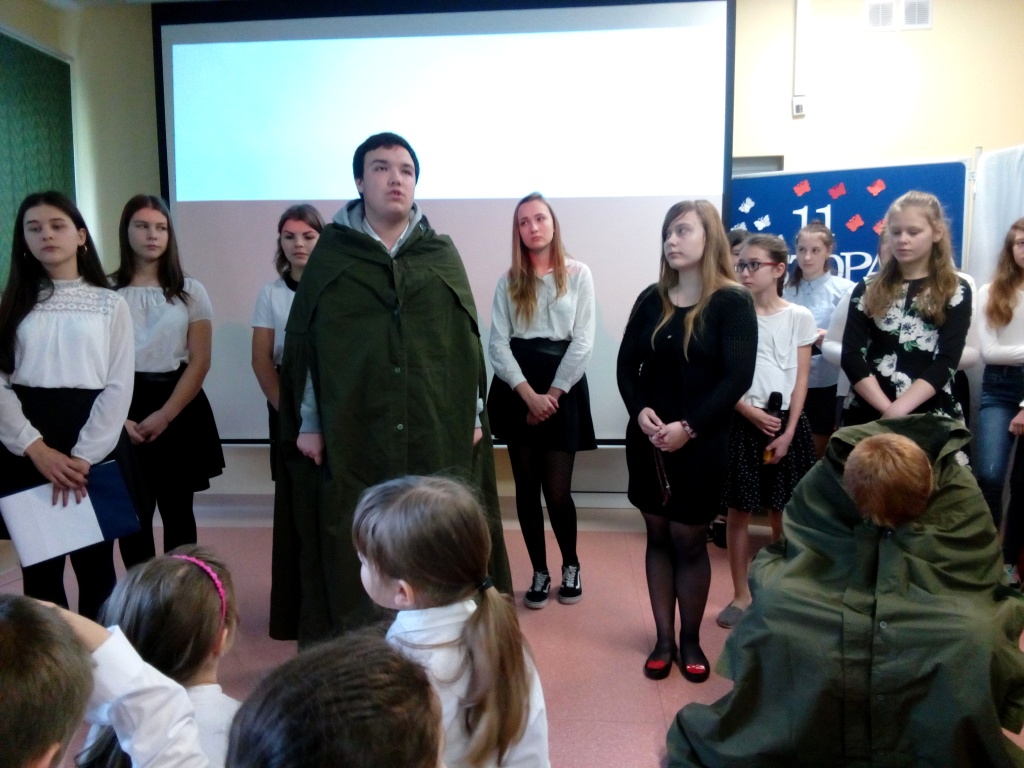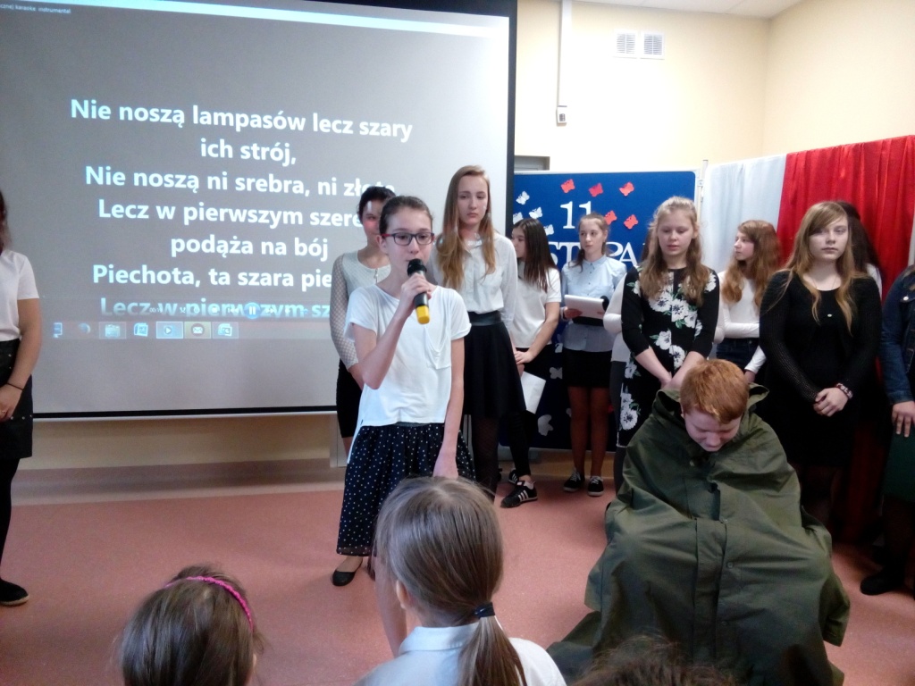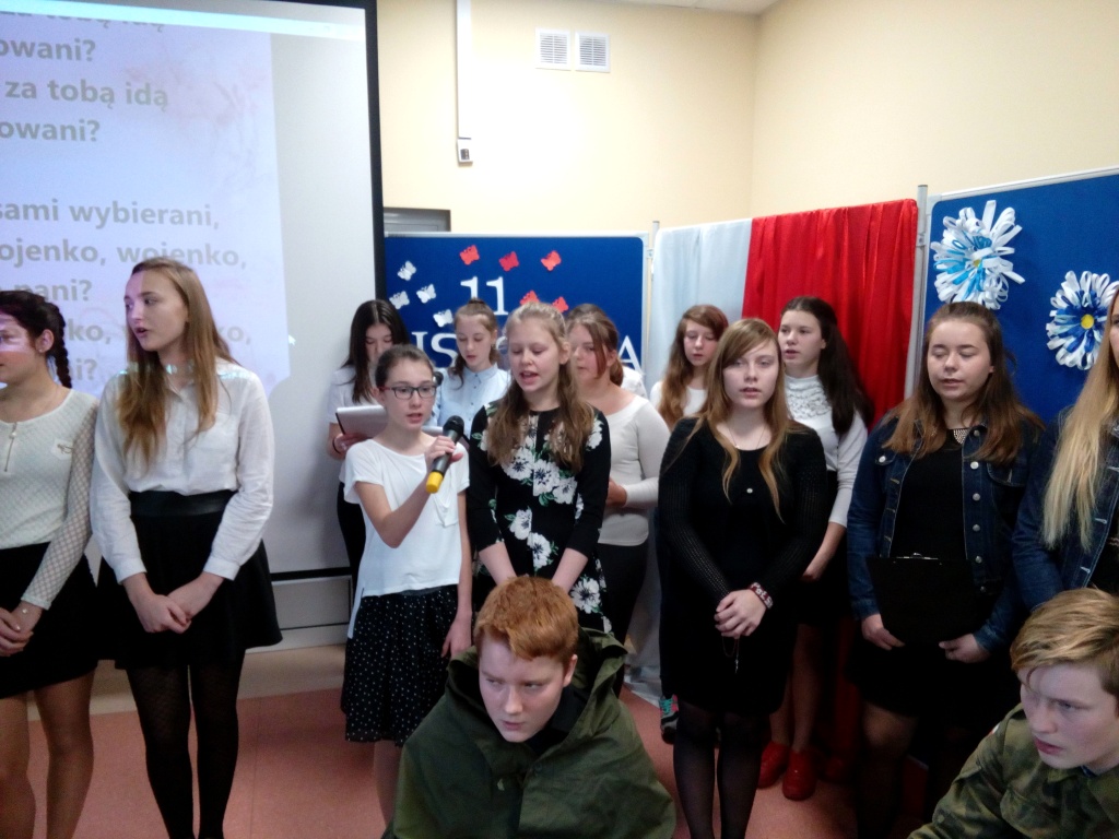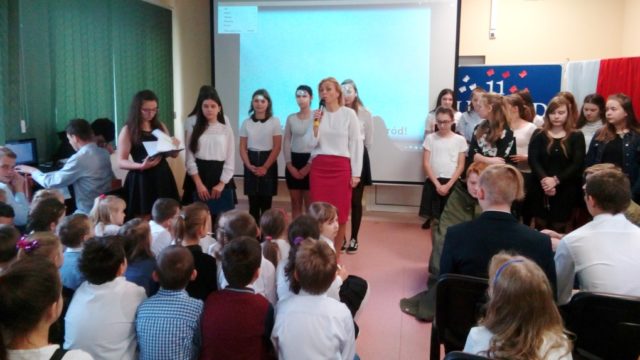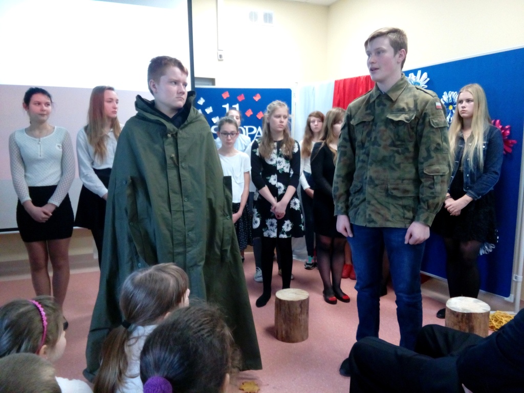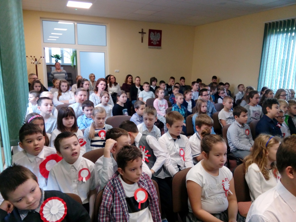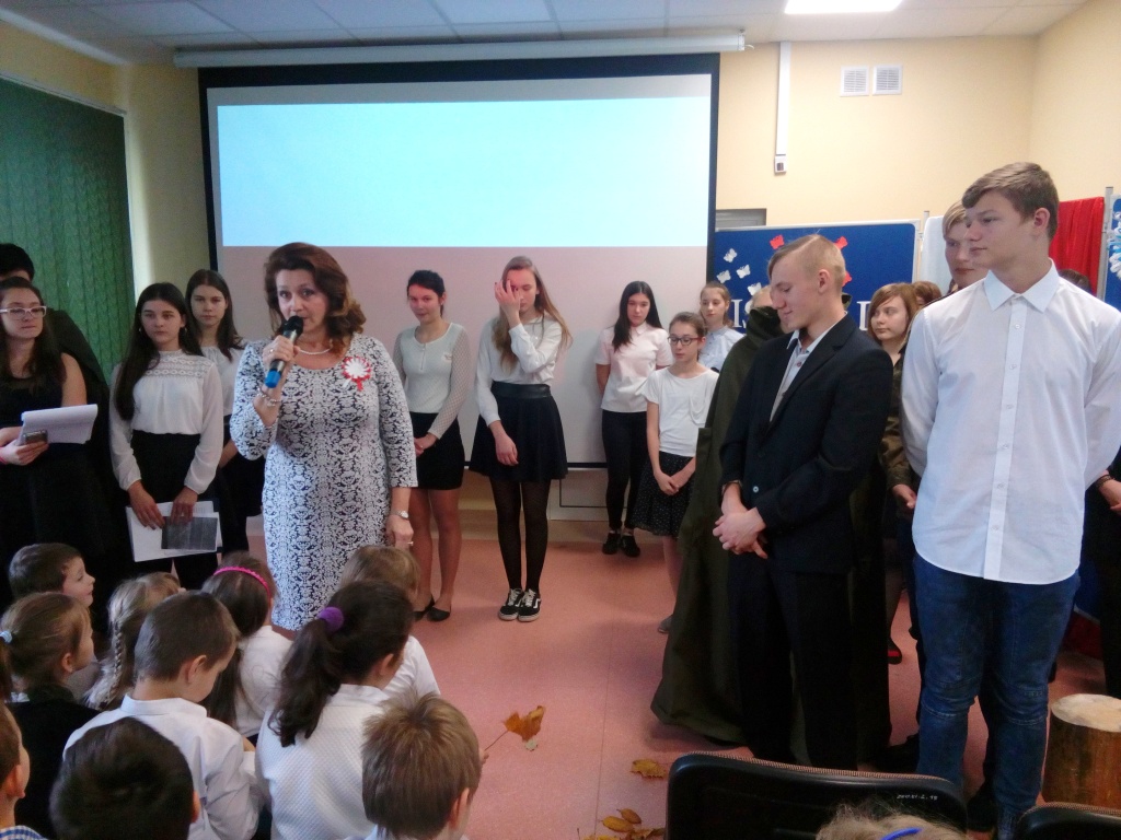 Z okazji Święta 11 Listopada w naszej szkole odbył się uroczysty apel. Montaż słowno-muzyczny przygotowała pani Dorota Zalewska wraz z uczniami naszej szkoły. Młodzież przypomniała drogę Polski do niepodległości, nasze dramatyczne dzieje oraz najważniejszych bojowników o wolność. Jednak największy nacisk położono na ukazanie niezłomnego ducha narodu polskiego, który nie pogodził się z  niewolą i stale wychodził z inicjatywą walki za ojczyznę. Przypomniano najważniejsze powstania narodowe, podkreślając bohaterstwo ich uczestników i jakże częstą ofiarę z własnego życia. Uczniowie recytowali wiersze i śpiewali pieśni patriotyczne, które pozwoliły  zrozumieć uczucia walczących o niepodległość. Dzień ten dla wielu jest lekcją patriotyzmu i historii. Uczestnicząc  w obchodach Święta Niepodległości dajemy wyraz pamięci o tych wszystkich, dzięki którym żyjemy dzisiaj w wolnej Polsce.