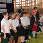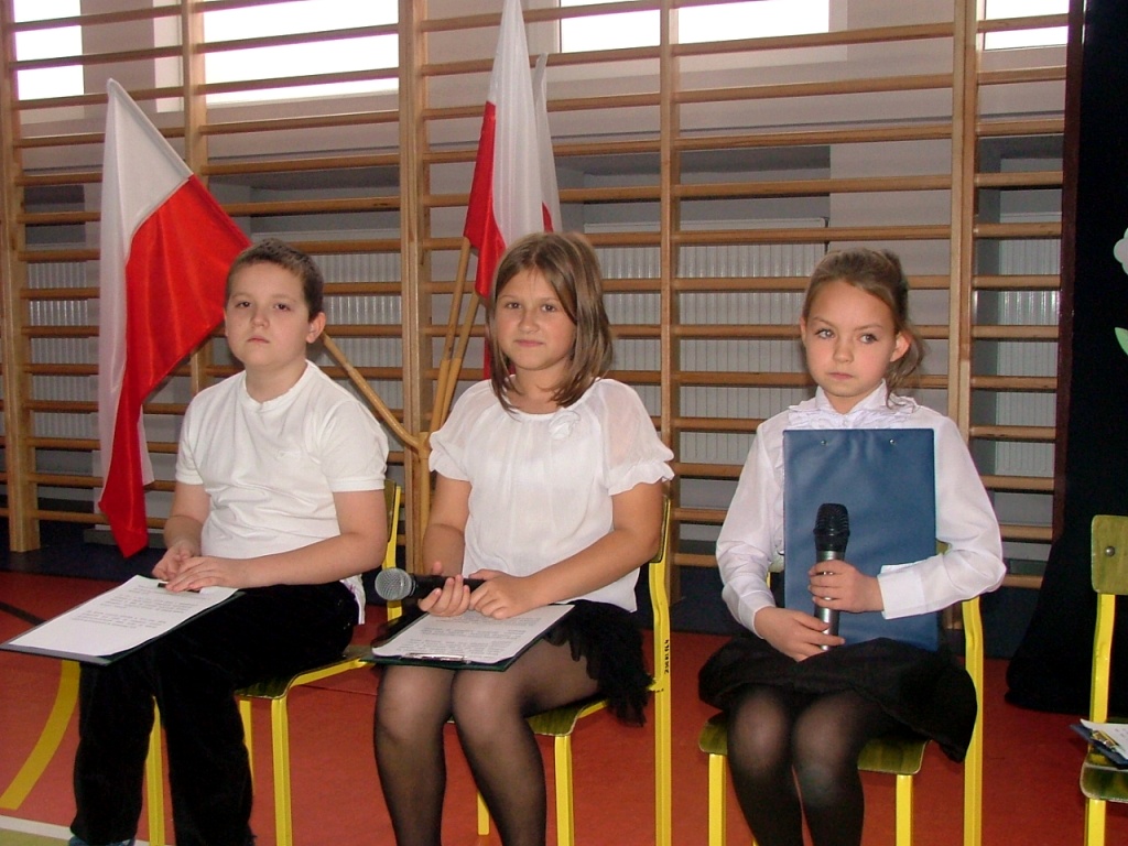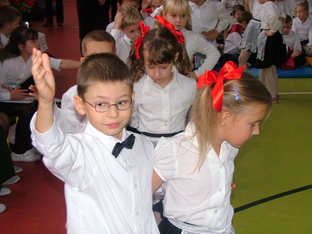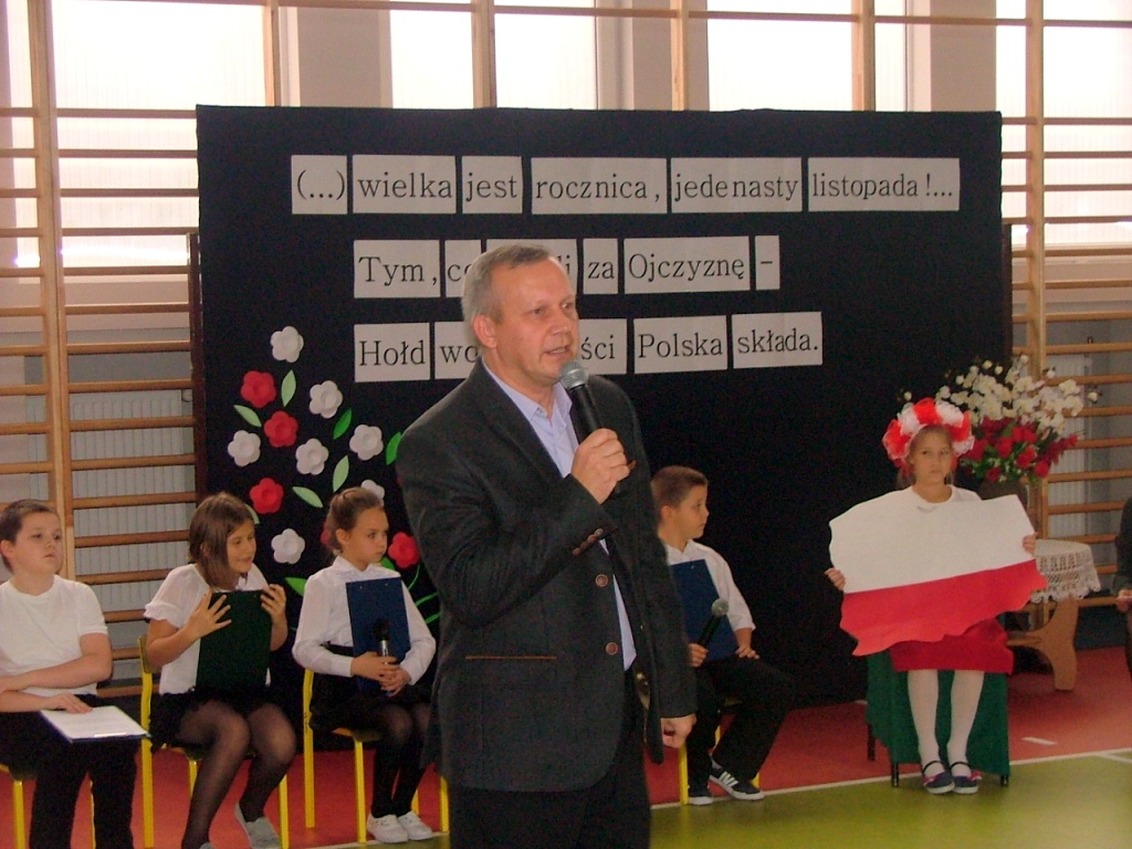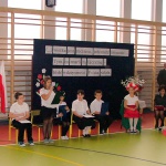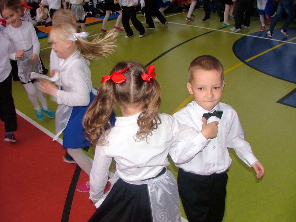 Dziś w naszej szkole odbyła się akademia z okazji Święta Odzyskania Niepodległości. Uroczystość przygotowali nauczyciele edukacji wczesnoszkolnej i świetlicy, przy współpracy z Zespołem Muzycznym. Tegoroczne spotkanie miało nietypowy przebieg: opierało się głównie na wspólnym śpiewaniu piosenek o charakterze patriotyczno – wojskowym, powstałych w okresie zdobywania niezawisłości państwowej. Wyświetlany na ekranie tekst pozwolił wszystkim uczestnikom akademii- nauczycielom, uczniom i licznie przybyłym rodzicom – razem wykonywać tak znane i lubiane utwory jak „Wojenko, wojenko”, „Przybyli ułani pod okienko”, „Rozkwitały pąki biały róż”, czy „My, pierwsza brygada”. Słowo wiążące między pieśniami oraz scenki dramowe przygotowały dzieci z klasy drugiej i trzeciej szkoły podstawowej. Na zakończenie pierwszaki wzruszyły i zachwyciły wszystkich wspaniałym wykonaniem krakowiaka – za ten taniec dostały burze gorących braw.