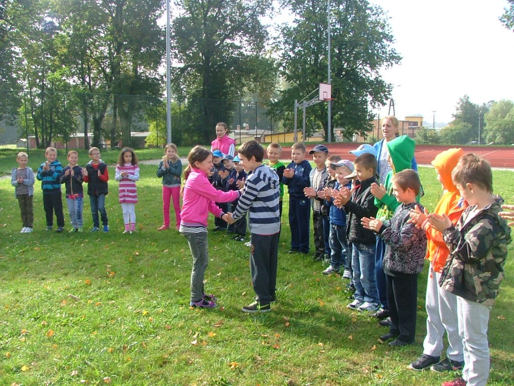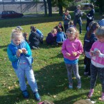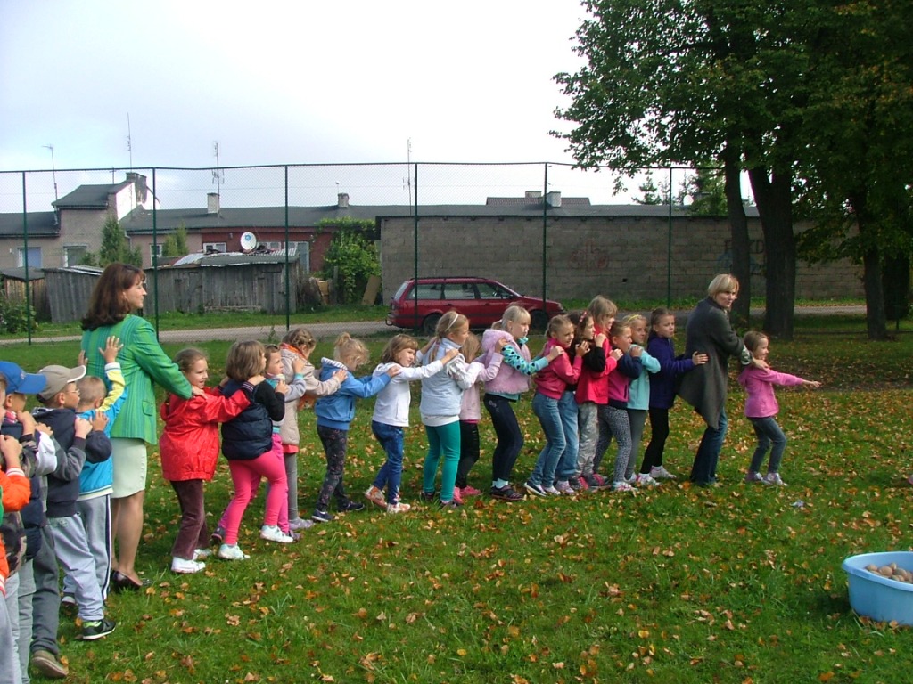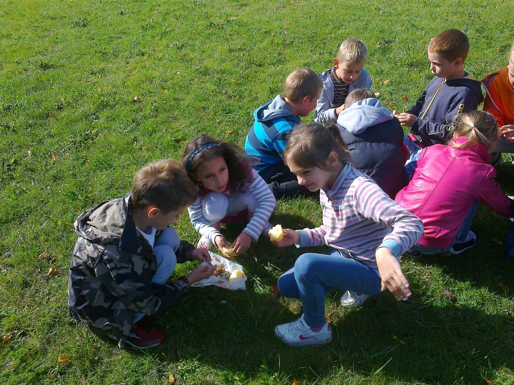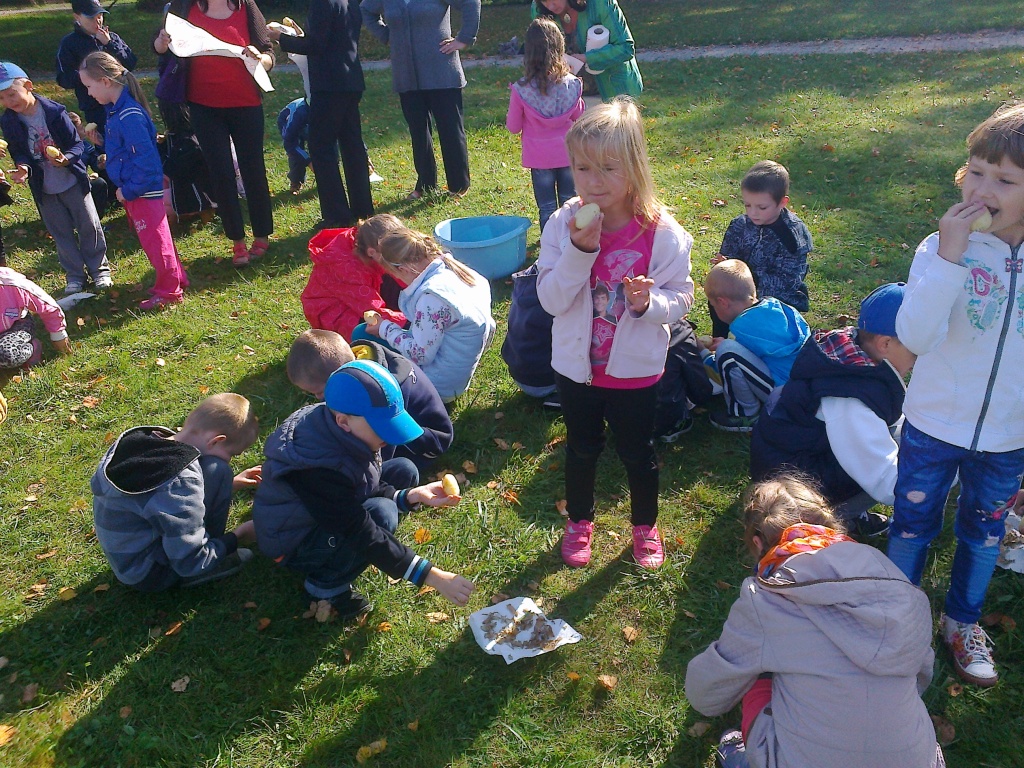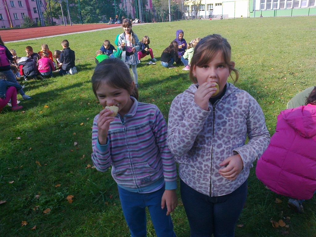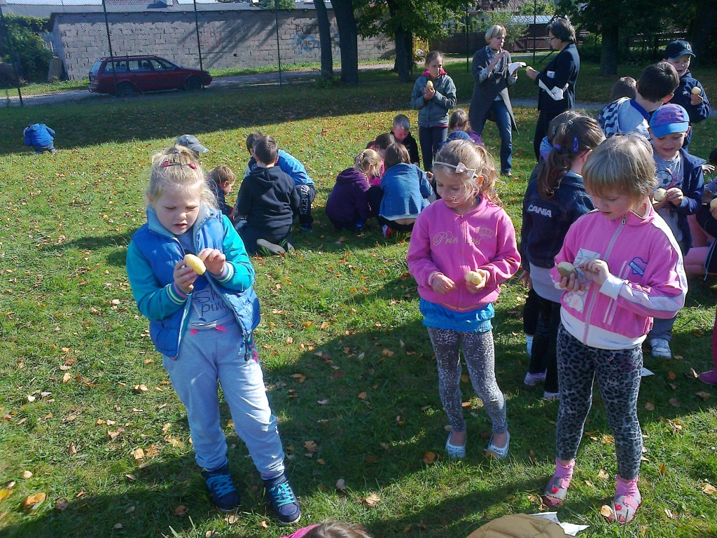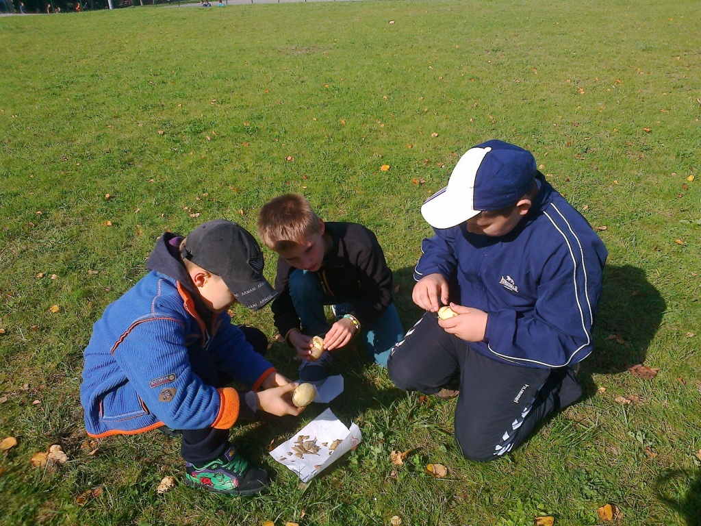 Dziś najmłodsi uczniowie naszej szkoły wraz z wychowawczyniami i nauczycielkami świetlicy wzięli udział w niecodziennej lekcji. Otóż na terenie rekreacyjnym w pobliżu boiska odbyło się Święto Ziemniaka. Na początku Julka i Dawid z klasy III a opowiedzieli o historii, pochodzeniu i roli we współczesnej kuchni tego smacznego warzywa. Następnie podczas wspólnych, wesołych zabaw, pląsów i śpiewów dzieci przenosiły się do państwa Inków, skąd kartofle pochodzą, na hiszpańskie karawele wiozące je do Europy, szły na wykopki – oczywiście, tylko w wyobraźni. Degustacja gotowanych ziemniaków odbyła się już naprawdę, a posiłek na świeżym powietrzu jak zwykle wszystkim smakował. Humory i wrześniowa pogoda dopisała, więc i zabawa była znakomita!