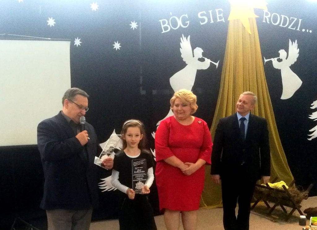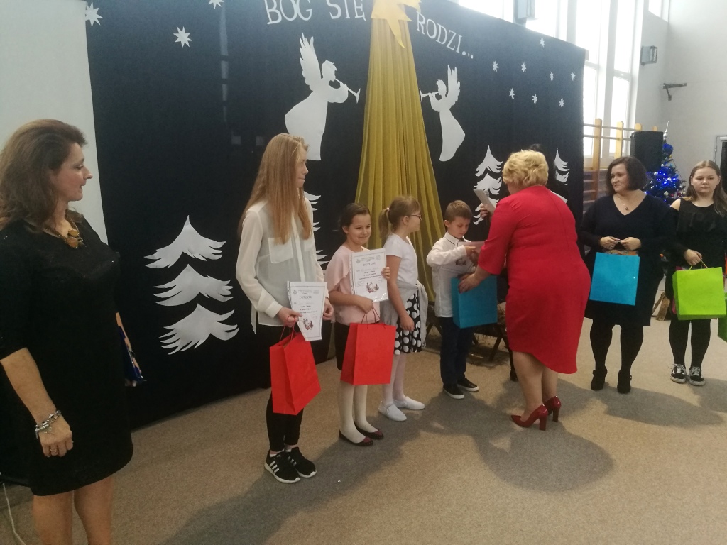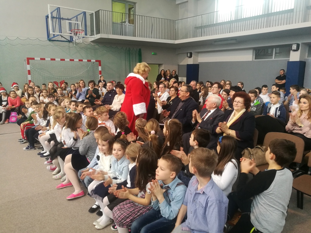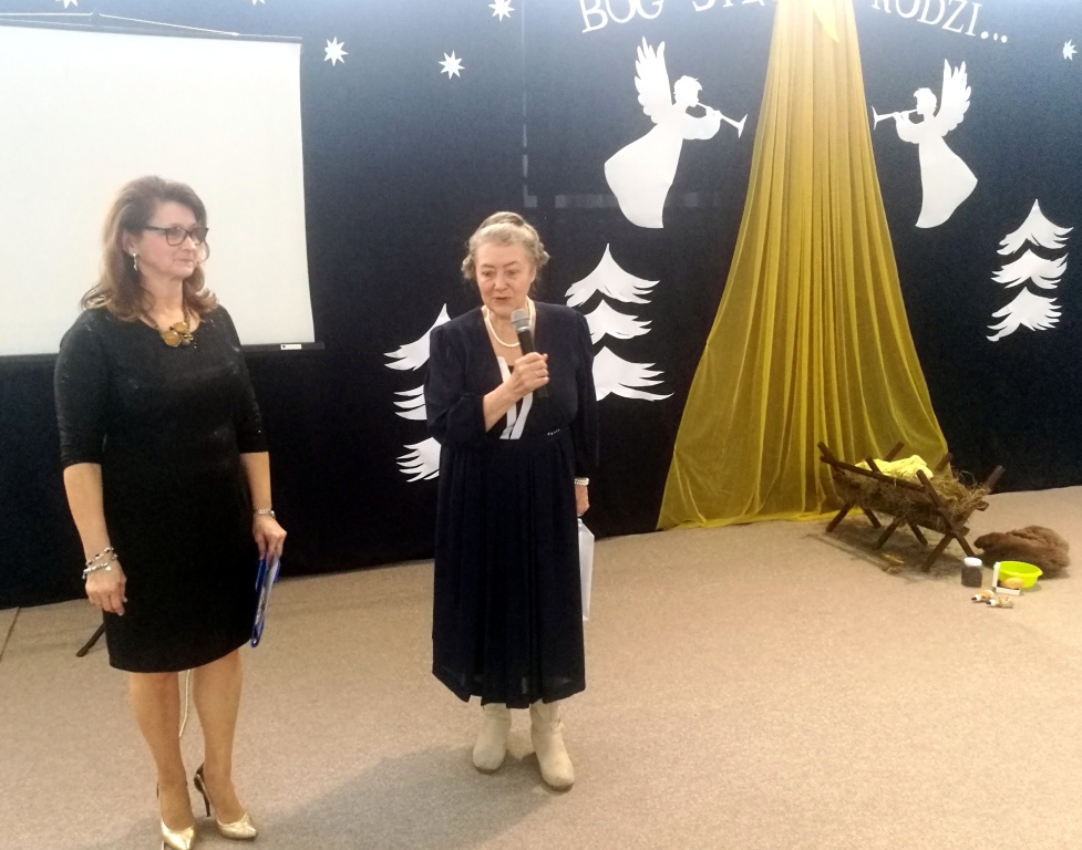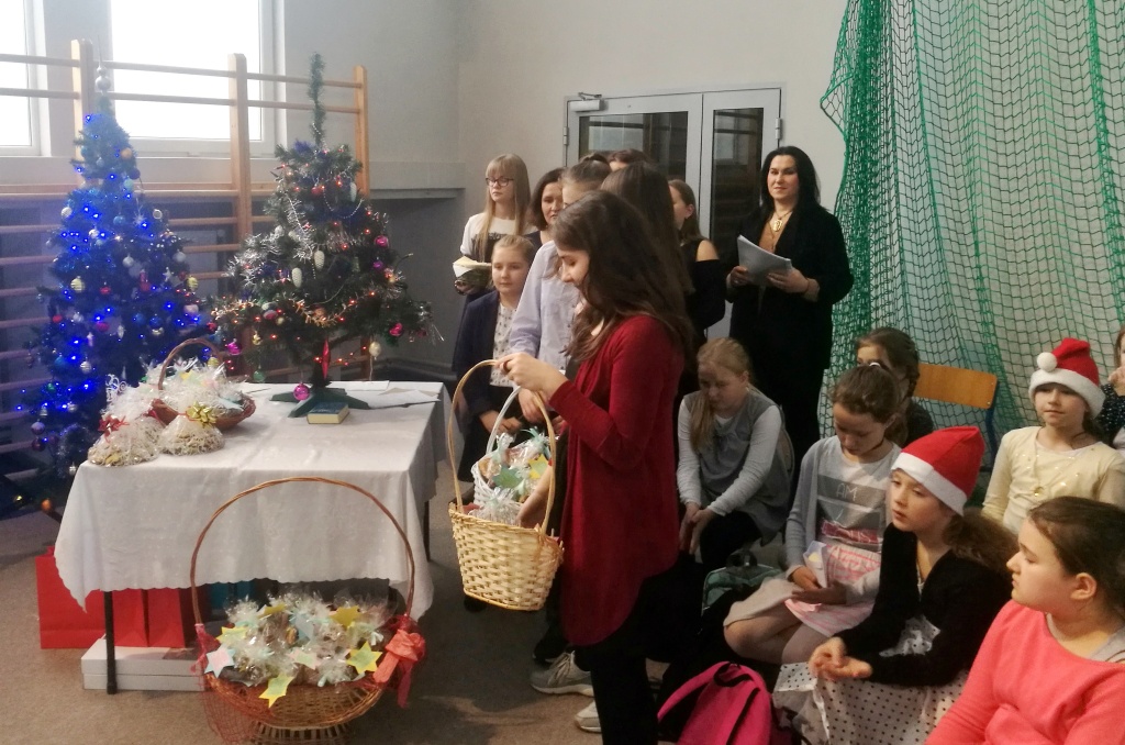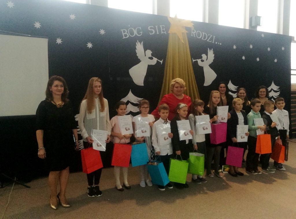 Dziś w naszej szkole odbyła się uroczystość Jasełek, połączona z opłatkowo-wigilijnym spotkaniem, organizowanym jak co roku przed Bożym Narodzeniem. Swoją obecnością zaszczycili nas: pani Burmistrz Sokółki Ewa Kulikowska i pan Burmistrz Adam Kowalczuk, pani Marta Półtorzycka z MOPS w Sokółce, dyrektor SOK pan Zbigniew Dębko, pani Maria Talarczyk z SFL, emerytowani nauczyciele naszej szkoły: p. Stanisław Omachel, p. Krystyna Czołpińska, p. Krystyna Biernacka, p. Katarzyna Olechno, panie Izabela Parchanowicz i Joanna Normantowicz z Rady Rodziców, ksiądz proboszcz Bogusław Urban. Nie zabrakło też pracowników dydaktycznych i administracyjnych, rodziców oraz dzieci i młodzieży naszej placówki. Jasełkowa inscenizacja, przygotowana przez uczniów szkoły podstawowej i gimnazjum pod okiem pani Małgorzaty Zieziula, wprowadziła wszystkich w świąteczny nastrój i przypomniała, jak ważny jest duchowy wymiar Bożego Narodzenia. Doskonale sprawdził się pomysł ze wspólnym kolędowaniem, bo i Jasełka zyskały na atrakcyjności, i wszyscy mogli poczuć się członkami jednej wspólnoty. Warto zaznaczyć, że wykonawcom towarzyszył akompaniament w wykonaniu ucznia kl. III b gimnazjum Mateusza Zalewskiego, grającego na keybordzie, a przy kolędzie „W żłobie leży” na skrzypcach grała też Julia Dębko z kl. 6 a. Miłym akcentem było rozstrzygnięcie konkursu na najładniejszą szopkę, w którym przyznano następujące nagrody: W kategorii gimnazjum – Weronika Doroszko i Wiktoria Żygieło z kl IIb, w kategorii szkoła podstawowa: I miejsce- Julia Taudul kl 7a, Aleksandra Jóźwik kl 3a, II miejsce – Karol Tomczak kl 2a, III miejsce – Emilia Niewiarowska, Iga Krawiel kl 3a, Natalia Bogusławska kl 4b, wyróżnienia – Agniszka Chłus kl 7a, Jakub Fiedorowicz kl 3a, Szymon Maliszewski i Kamil Matukiewicz kl 2a.