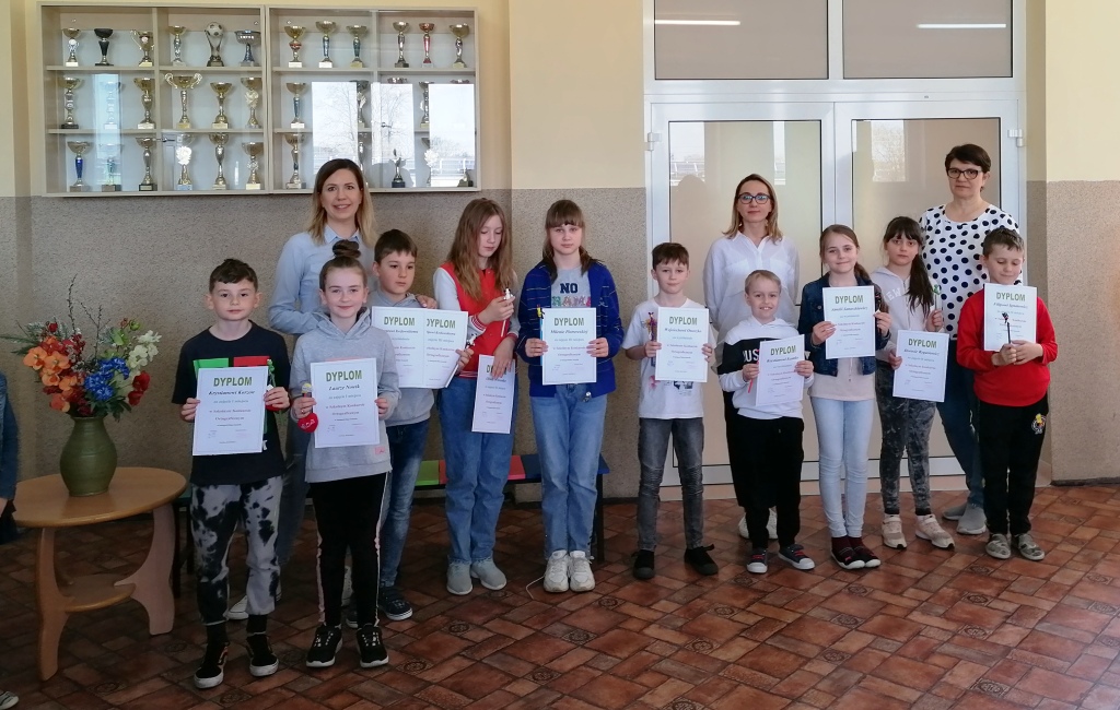 Dnia 25 kwietnia odbył się Szkolny Konkurs Ortograficzny. Uczniowie klas I-III zmagali się z dyktandami najeżonymi trudnościami ortograficznymi. Musieli wykazać się dużą znajomością zasad ortograficznych, a co za tym idzie pisownią trudnych wyrazów. Podsumowanie konkursu odbyło się 29 kwietnia. Laureaci otrzymali dyplomy i drobne upominki, które wręczyła p. dyrektor Katarzyna Chociej.