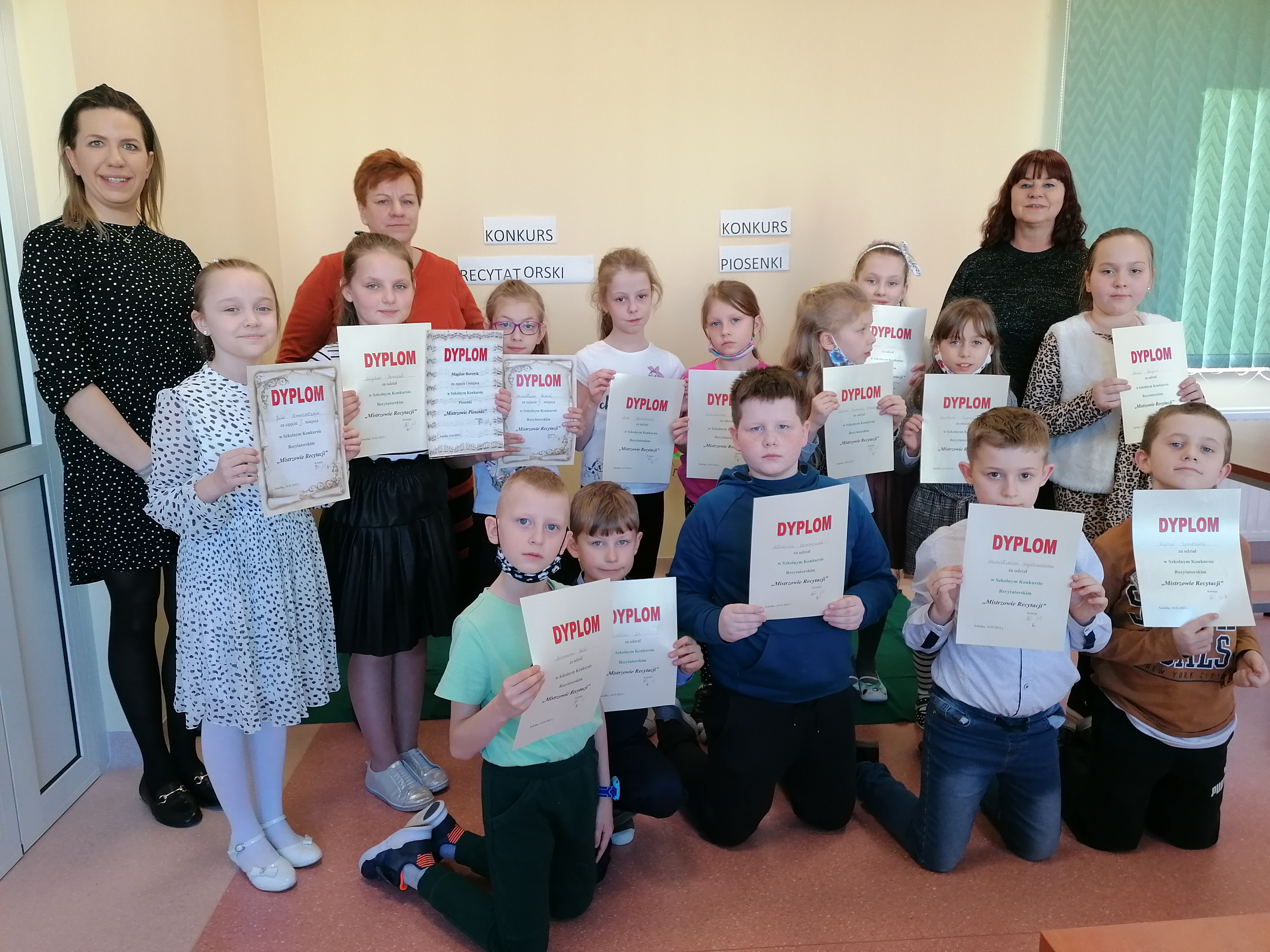 14 marca odbył się Szkolny Konkurs Recytatorski i Piosenki. Przewodnim tematem prezentowanych utworów był mikrokosmos. Jury konkursu w składzie: p. Jolanta Paruk, p. Ewa Harasimowicz i p. Anna Bajeńska z przyjemnością wysłuchały interpretacji wierszy i piosenek o owadach. W konkursach udział wzięło 14 uczniów z klas 1-3. Do eliminacji miejskich, decyzją jury, zakwalifikowały się: Julia Normantowicz i Magda Borowik z kl 3a oraz Stanisława Primak z kl 2a.