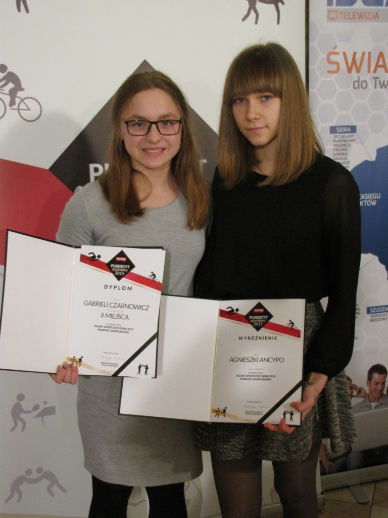 W dniu 29 stycznia 2016 r. w sali bankietowej „Karczmy pod Sokołem” w Sokółce odbyła się uroczysta gala wręczenia nagród uczestnikom plebiscytu na „Supersportowca Roku 2015 Powiatu Sokólskiego” oraz „Talent Sportowy Roku 2015 Powiatu Sokólskiego” zorganizowanego przez tygodnik „Nowiny Sokólskie”. Głosowanie odbywało się za pomocą kuponów zamieszczonych w ,,Nowinach Sokólskich”. W kategorii „Talent Sportowy Roku 2015 Powiatu Sokólskiego” nominowana była Agnieszka Ancypo, uczennica klasy VI naszej szkoły, trenująca pływanie w UKS Omega Sokółka. W podsumowaniu głosowania zajęła VI miejsce.