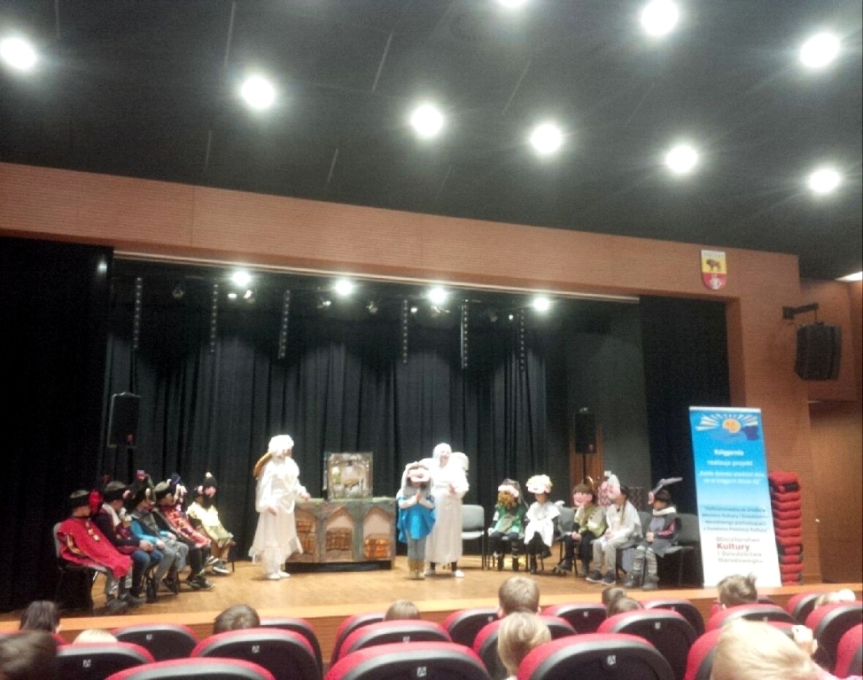 Kolejne spotkanie z Teatrzykiem pod Orzełkiem miało miejsce w naszej szkole 26 listopada. Aktorzy zaprezentowali sztukę „Lekcja o Polsce, czyli bajka o Wiśle, legenda o smoku wawelskim oraz o Warsie i Sawie”.