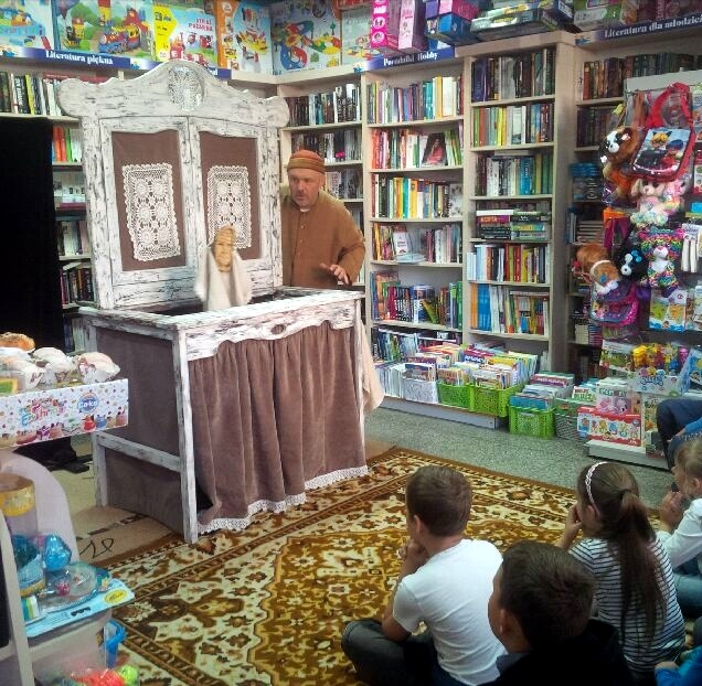 Pierwsze spotkanie odbyło się 15 października w księgarni. Białostocki Teatr pod Orzełkiem zaprezentował „Opowieści Starego Kredensu”. Profesor Hilary Szczebrzeszyński wraz z roztargnioną asystentką panią Anią opowiedział bajkę o Grzecznym Rycerzu i legendę o Złotej Kaczce. Postaciami były lalki stworzone z kuchennych przedmiotów mieszkających w starym kredensie. W trakcie spektaklu dzieci złożyły rycerskie ślubowanie przez co powiększył się Zakon Rycerzy Grzeczności. Na zakończenie spotkania koordynator projektu wręczyła prezent: Teatrzyk Kamishibai (japońska sztuka czytania bajek) wraz z kartami narracyjno – obrazkowymi oraz komplety książek do biblioteki szkolnej.