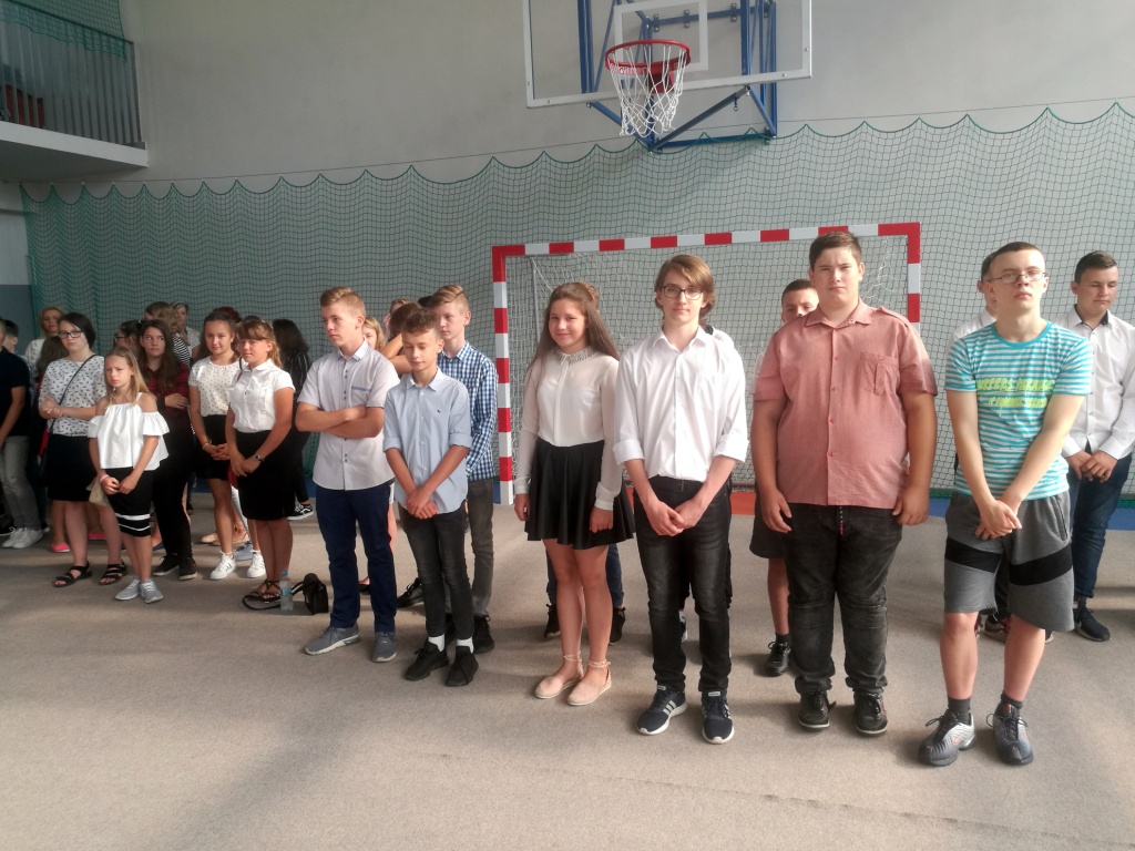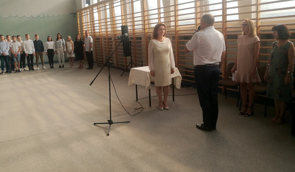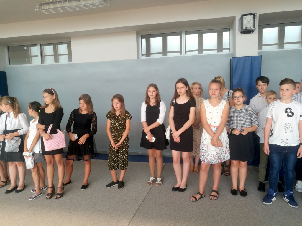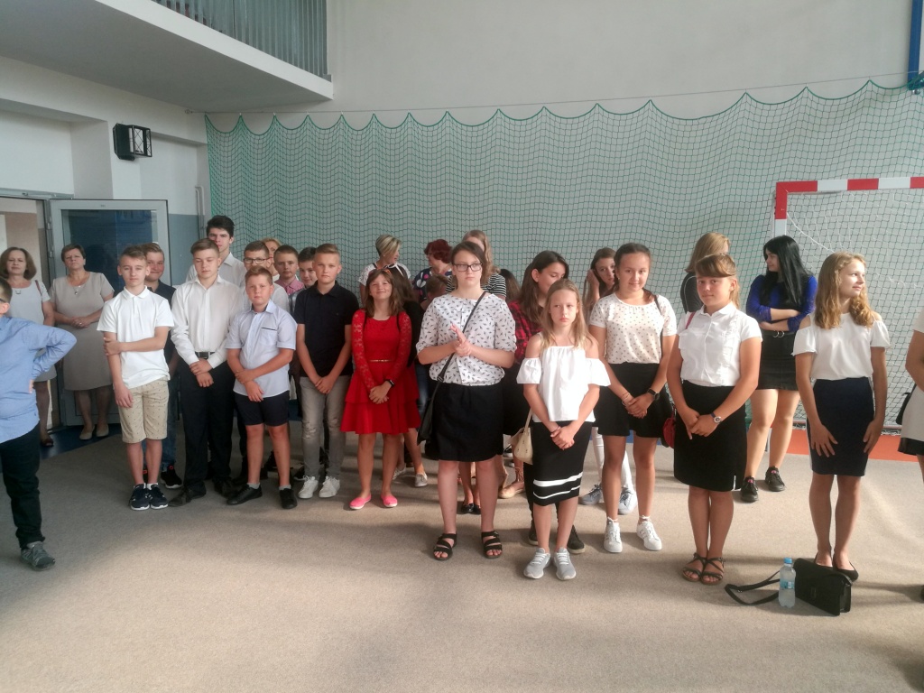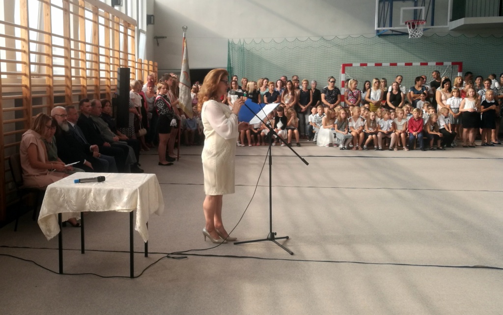 2 września 2019 r. rozpoczęliśmy kolejny rok szkolny. Wakacje jak zwykle trwały za krótko i ciężko rozstawać się z letnim odpoczynkiem, ale z drugiej strony powrót do szkoły oznacza spotkanie z kolegami i koleżankami, nowe wyzwania i perspektywę realizacji ambitnych planów. Jak zwykle zgromadzonych w sali gimnastycznej powitała pani dyrektor Anna Andrzejewska. Inaugurację zaszczycili swoja obecnością goście specjalni: pan burmistrz Adam Kowalczuk, radny Piotr Kirpsza, ks. Bogusław Urban, młodszy aspirant Joanna Kłos. Największe emocje na pewno przeżywali pierwszoklasiści, kilku nowych uczniów i pracowników szkoły. Wszystkim życzymy udanego roku szkolnego, oby był czasem umacniającym poczucie, że szkoła to nie tylko miejsce pracy i nauki, ale także miejsce odkrywania świata, budowania relacji, kształtowania wartościowych postaw a także rozwijania zainteresowań i pasji.