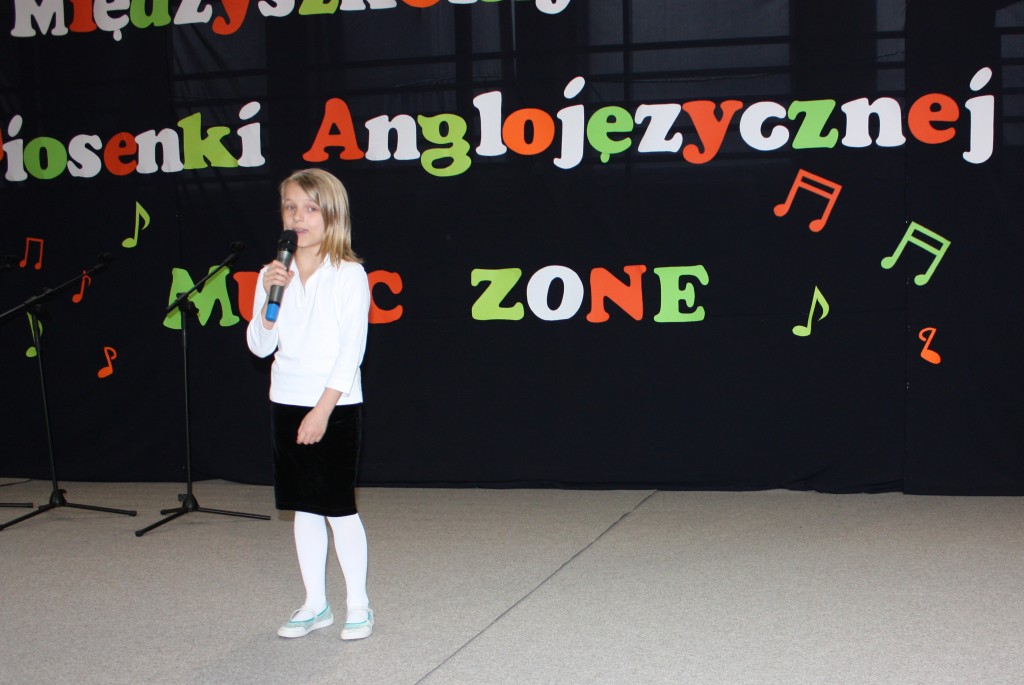 W dniu 29 kwietnia w Zespole Szkół Ogólnokształcących odbył się V Międzyszkolny Konkurs Piosenki Anglojęzycznej „Music zone”. W tegorocznej edycji wzięło udział 54 wykonawców z pięciu szkół podstawowych: Sokółki, Geniusz, Bogusz, Starej Rozedranki oraz Starej Kamionki. Młodzi artyści występowali solo i w duetach w dwóch kategoriach: klasy I-III i IV-VI. Jury w składzie Ewa Dębko (SP 3), Ewa Głażewska (Gimnazjum nr 1) i Marta Iłenda (ZSI) w ocenie brało pod uwagę następujące elementy: czystość intonacji i prawidłową emisją głosu, właściwą wymowę w języku angielskim oraz ogólny wyraz artystyczny. Trzeba przyznać, że poziom występów był bardzo zróżnicowany i wśród młodych wykonawców można było dostrzec wzrastające talenty muzyczne. Ważny jest też sam udział w występie, zamiłowanie do śpiewu i opanowanie tremy, która zwłaszcza dla najmłodszych piosenkarzy bardzo dawała się we znaki. Po naradzie jury nagrodziło następujących wykonawców: