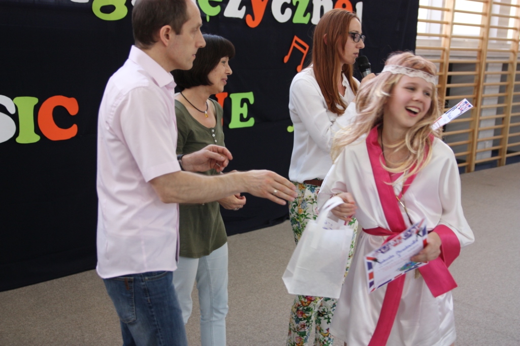 Zwycięzcy otrzymali dyplomy i cenne nagrody rzeczowe, ufundowane przez sponsorów: Burmistrza Sokółki, firmy Metal-Fach, firmy GENES, Zakładu Wydobycia Kruszywa H.A. Czarneccy oraz wydawnictw Mcmillan i Oxford. W przerwach konkursu wystąpiła Martyna Kułak, uczestniczka i laureatka pierwszej edycji konkursu, a obecnie uczennica klasy III Gimnazjum w ZSO, która zachwyciła wspaniałą interpretacją piosenek „Halleluja”, „Then I was your man” i „All of me”. Organizatorzy konkursu – nauczyciele angliści ZSO: Katarzyna Chociej i Sławomir Rochalski- składają serdeczne podziękowania sponsorom oraz nauczycielom, którzy przygotowali swoich uczniów do występu.
