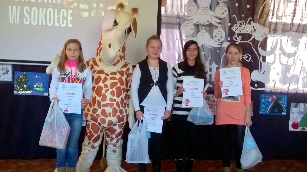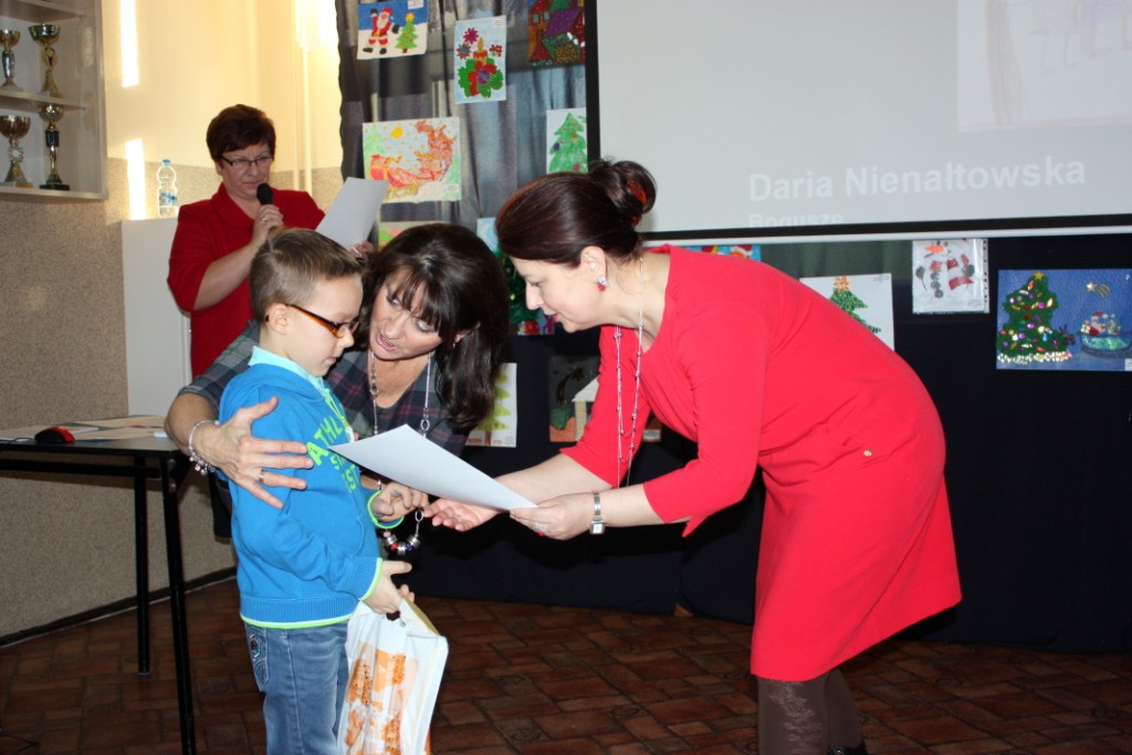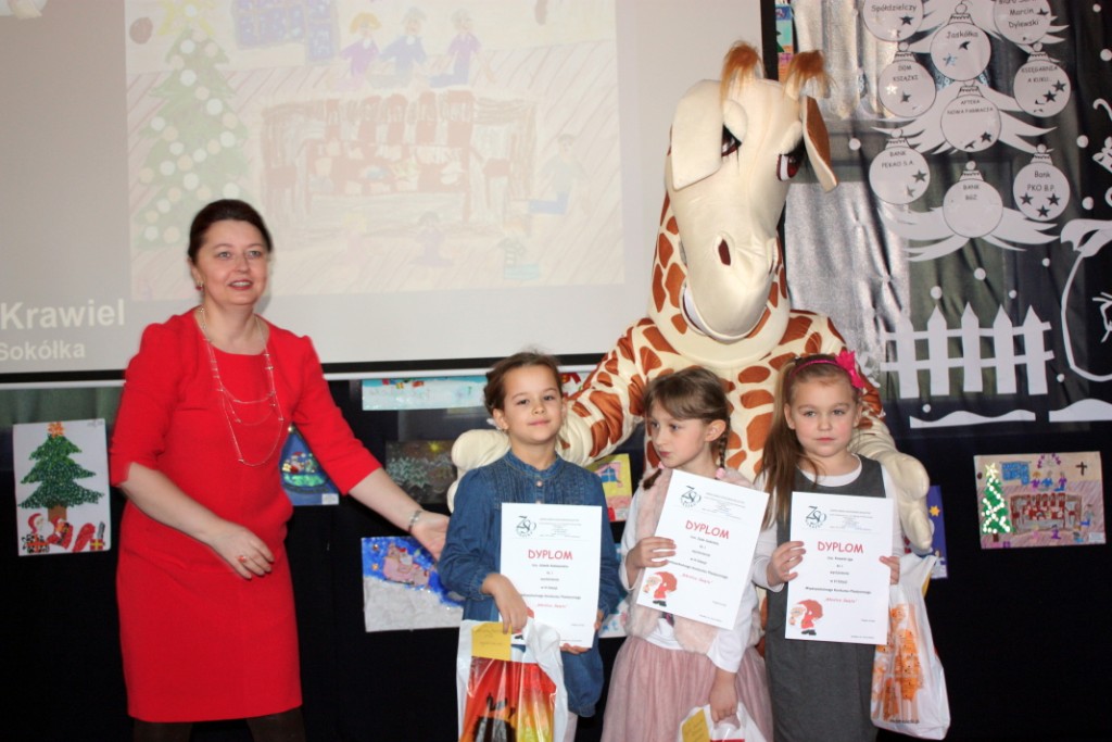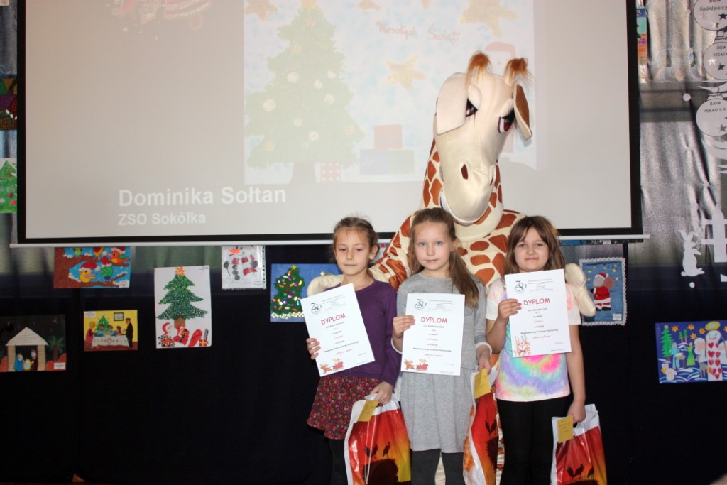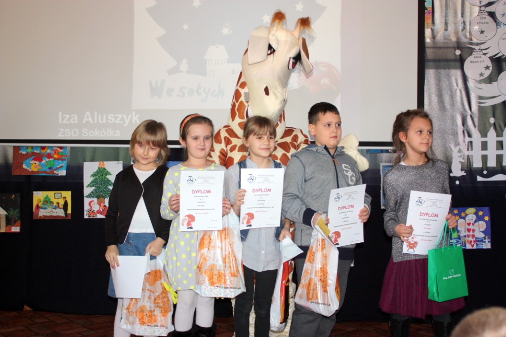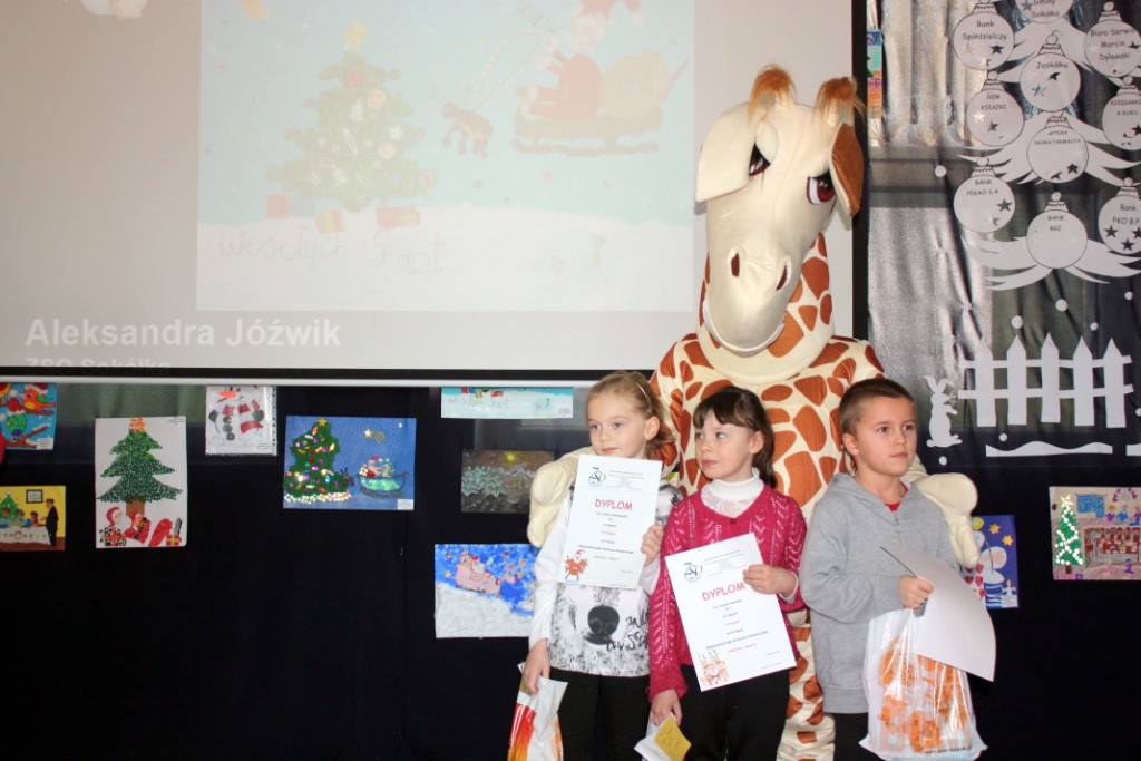 W dniu dzisiejszym w naszej szkole odbyło się rozstrzygnięcie VI Międzyszkolnego Konkursu Plastycznego „Wkrótce święta”. W tegorocznej edycji wzięło udział 264 młodych artystów z przedszkoli i szkół podstawowych miasta i gminy Sokółka oraz z SOSW im. Janusza Korczaka. Gośćmi specjalnymi uroczystości były panie: Anna Żemojduk z Urzędu Miasta i Gminy oraz Marzanna Anna Bielenica- dyrektor Banku PKO BP w Sokółce. Jury w składzie: p. Anna Andrzejewska, p. Jolanta Paruk, p. Dorota Kamińska, p. Jolanta Dąbrowska i p. Barbara Chancewicz, nagrodziło i wyróżniło 63 prace. Wybór nie był łatwy, gdyż wszystkie prace były wyjątkowe, oryginalne i piękne, pełne twórczej ekspresji i artystycznego wyrazu. Uczniowie w nagrodę otrzymali nie tylko dyplomy, ale też nagrody rzeczowe ufundowane przez sponsorów: