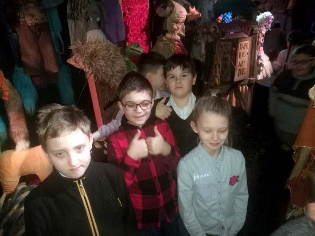 9 stycznia 2019 r. uczniowie z klas I-III naszej szkoły byli na wycieczce w Białostockim Teatrze Lalek na sztuce „Pinokio”. Wyjazd odbył się w ramach realizacji zadań projektu „Nowa jakość edukacji…”. To niezwykłe przedstawienie powstało w wyniku koprodukcji Opery i Filharmonii Podlaskiej – Europejskiego Centrum Sztuki w Białymstoku i Białostockiego Teatru Lalek. Spektakl skierowany do najmłodszej widowni zawierał liczne atrakcje – różnego rodzaju lalki, przebojowe piosenki, świetną grę aktorów oraz kwintet smyczkowy na żywo. Aktorzy BTL wystąpili w towarzystwie muzyków z OiFP, co niezwykle uatrakcyjniło widowisko. Dzieci bardzo przeżywały perypetie słynnego drewnianego pajacyka. Wszystkich zaciekawiły niesamowite dzieje trochę niemądrej i łatwowiernej marionetki, a dobre zakończenie bajki stanowiło jednocześnie życzliwy i ponadczasowy morał. Miejmy nadzieję, że kiedy nasi uczniowie dorosną, to z przyjemnością samodzielnie przeczytają powieść Carlo Collodiego, która tak niezwykle zaprezentowała się dziś na deskach BTL. Po skończonym przedstawieniu odbyło się spotkanie z aktorami.
