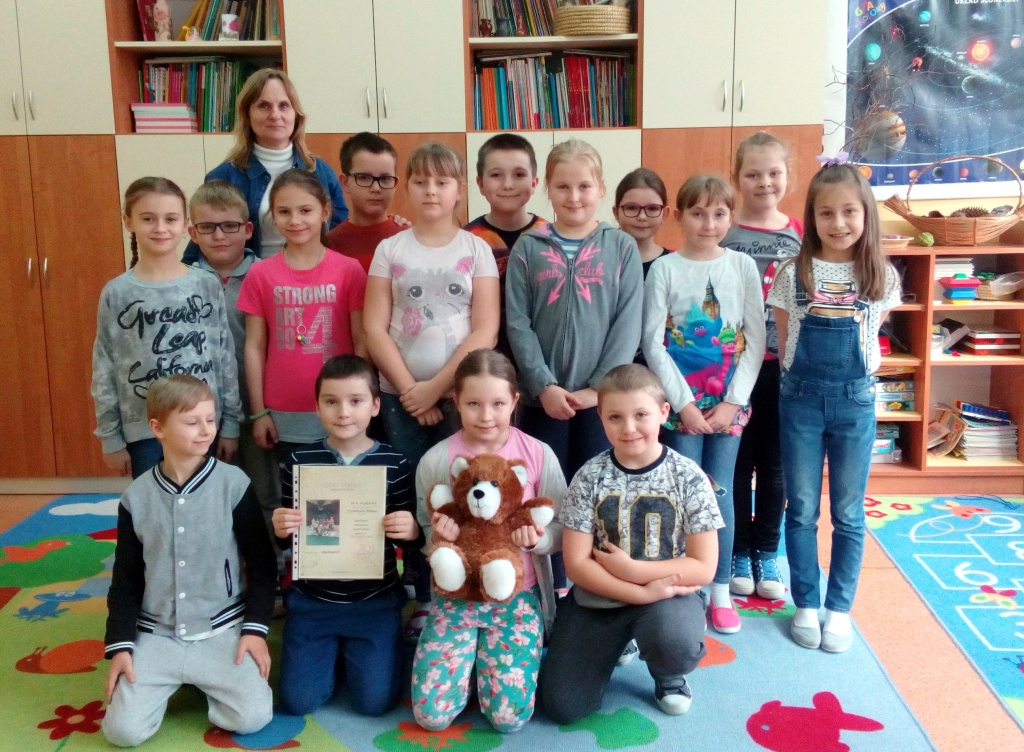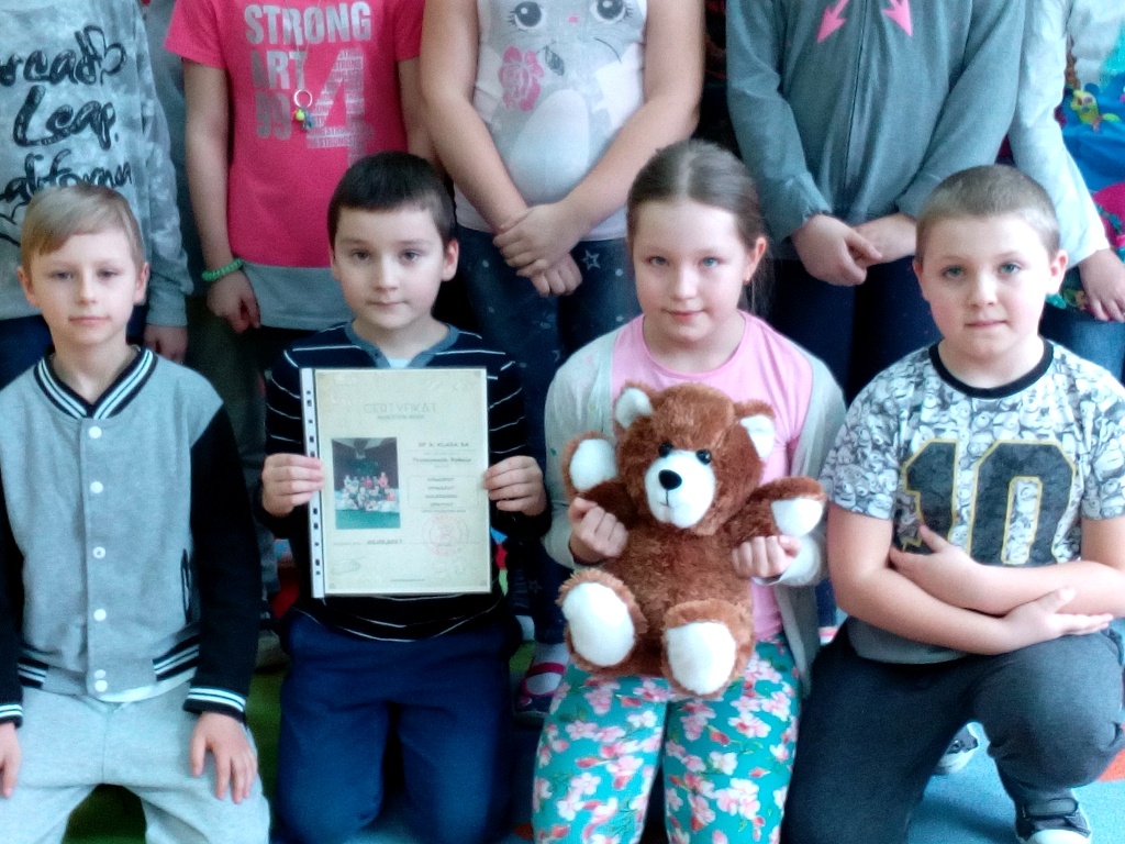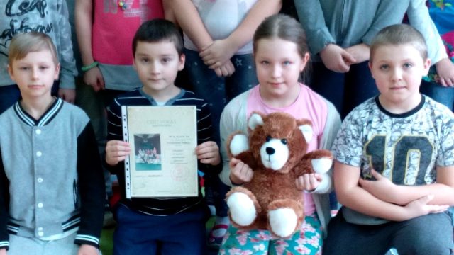 W listopadzie nasza koleżanka Maja Szydłowska zajęła I miejsce w konkursie organizowanym przez Fabrykę Misia w Białymstoku. W nagrodę Maja pojedzie do Parku Rozrywki Disneyland w Paryżu, a nasza klasa została zaproszona do Centrum Zabaw „Fabryka Misia”.