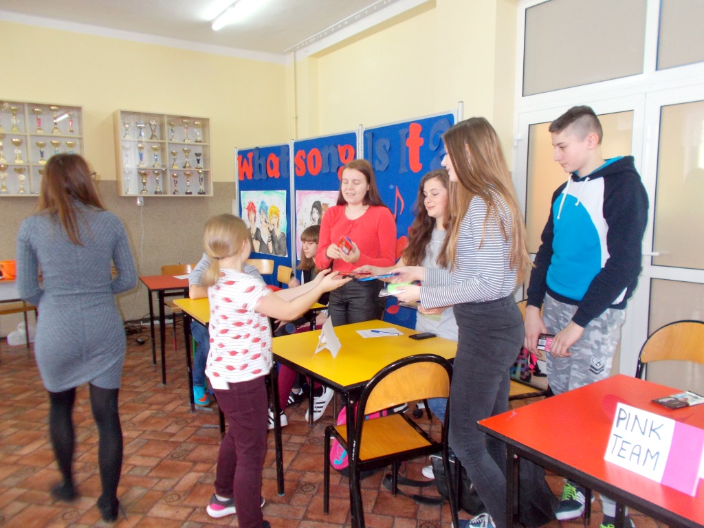 Dziś w ZSO odbyła się kolejna już IV edycja cyklicznego turnieju z okazji Walentynek, zatytułowanego „What song is it ?” Konkurs został zorganizowany przez anglistów panią Kasię Chociej, pana Sławka Rochalskiego przy współpracy opiekuna samorządu uczniowskiego Gimnazjum pani Gosi Chociej. Piosenki do konkursu zostały dobrane tematycznie, a tematem przewodnim wszystkich prezentowanych utworów była oczywiście MIŁOŚĆ. W turnieju udział wzięło 7 zespołów, reprezentowanych przez klasy gimnazjalne I a, I b, II a, II b, III a i III b, i jeden zespól ze szkoły podstawowej reprezentowany przez klasę VIa. Zadaniem uczestników było odgadnięcie nazwy piosenki oraz wykonawcy po wysłuchaniu 20 sekundowego fragmentu.