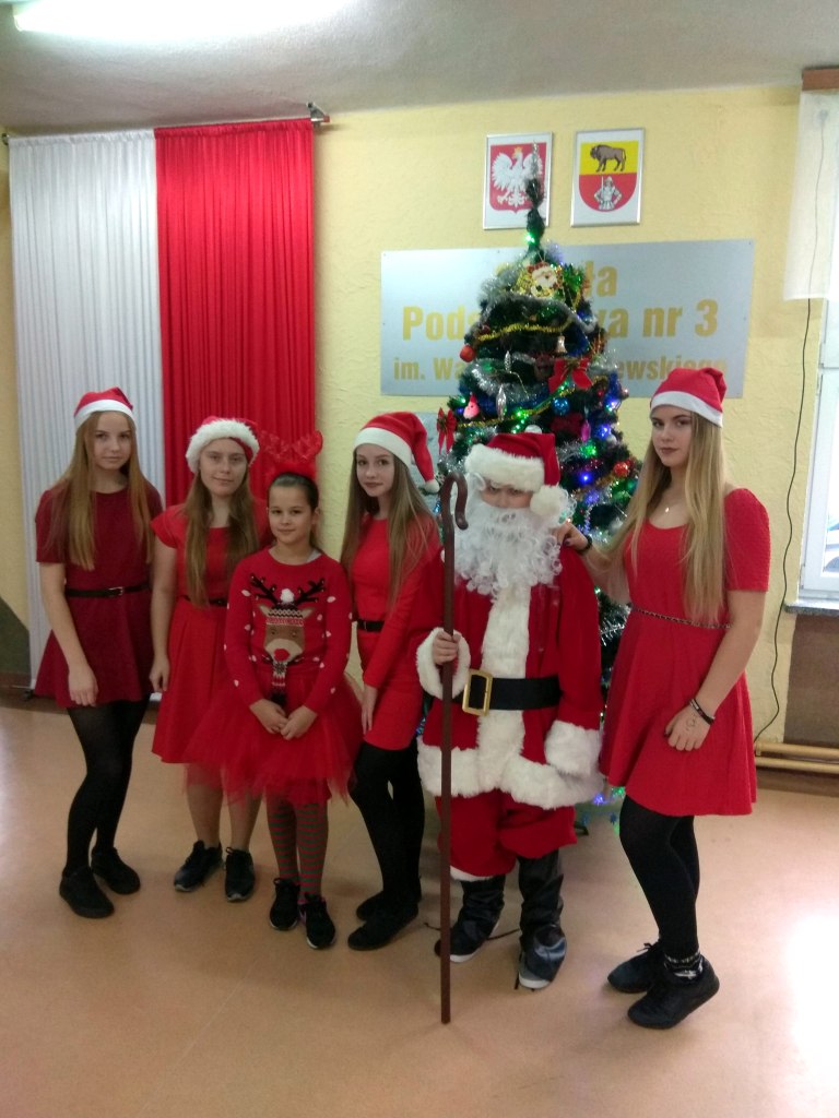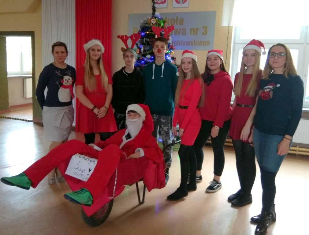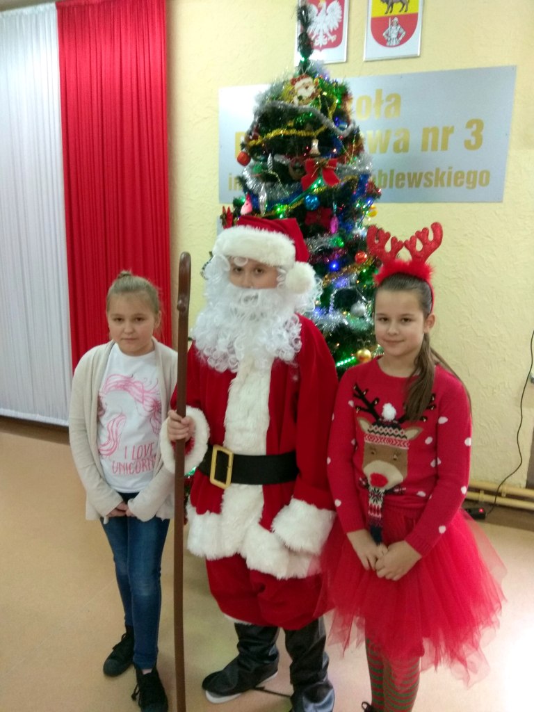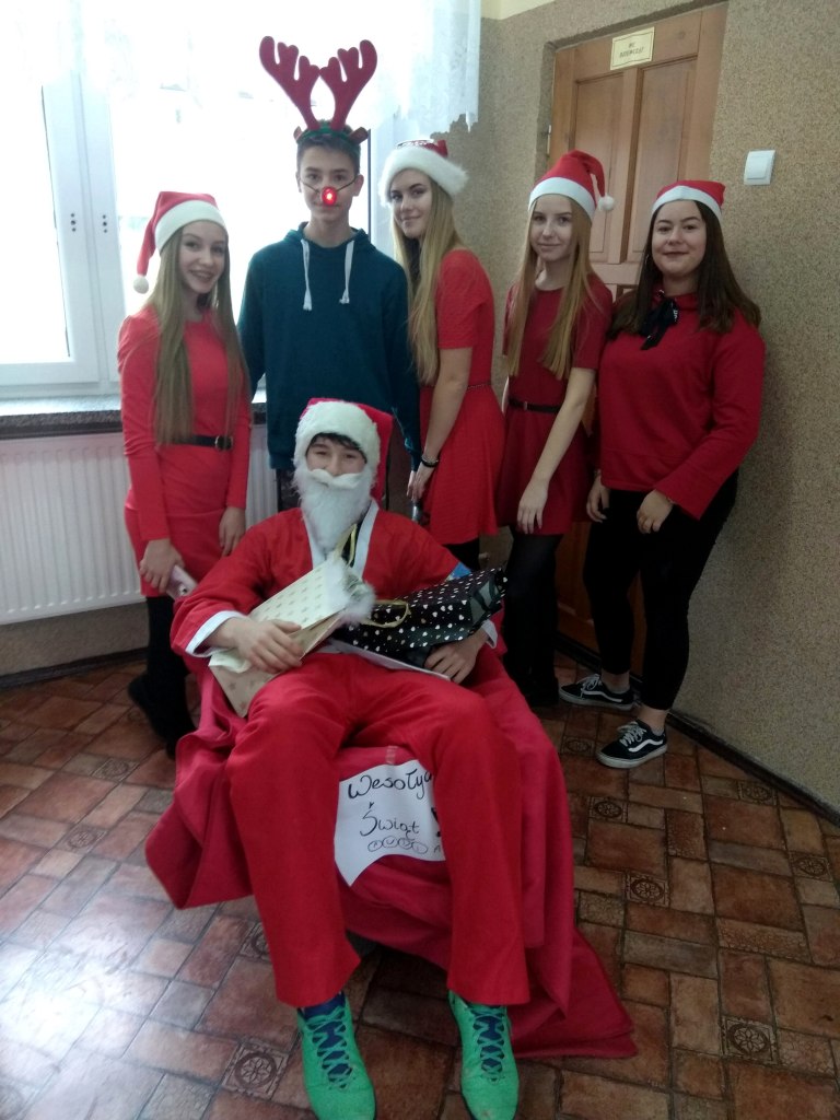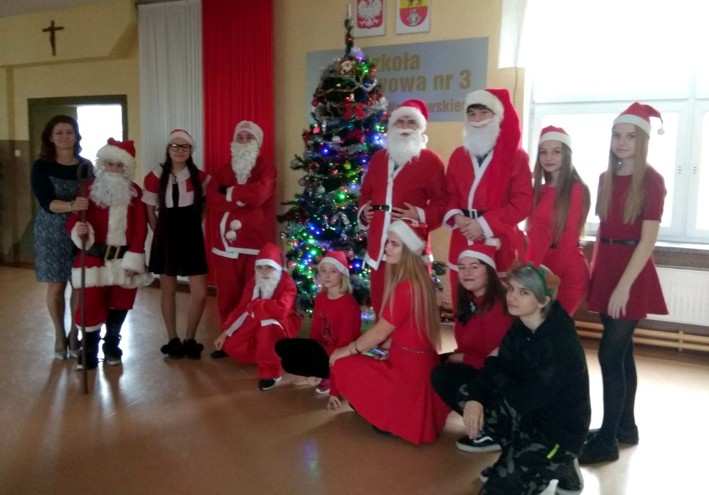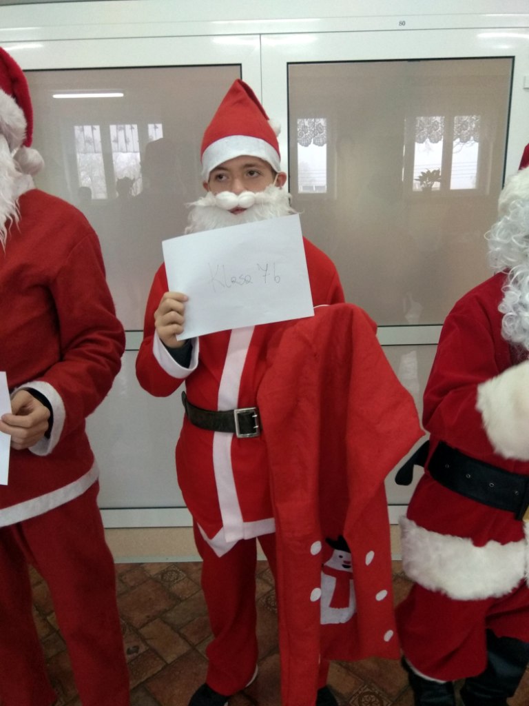 Dnia 6 grudnia w naszej szkole, jak co roku obchodziliśmy Mikołajki jednak w tym roku trochę inaczej, ponieważ Samorząd Uczniowski zorganizował wybory na Mikołaja szkoły. Zadaniem każdej klasy było przebranie jednego ucznia za Mikołaja i zaprezentowanie go jurorom, którzy oddawali głosy na najbardziej kreatywne przebranie. Jurorami byli najmłodsi uczniowie naszej szkoły oraz nauczyciele, ale nie wychowawcy klas. Wybór był trudny. Ostatecznie tytuł Mikołaja szkoły uzyskał uczeń, a nawet grupa uczniów klasy III b gimnazjum, którzy tworzyli team Mikołaja. II miejsce uzyskała klasa III a gimnazjum, a III miejsce klasa V b.