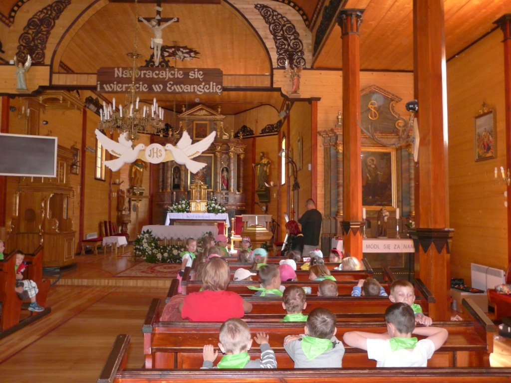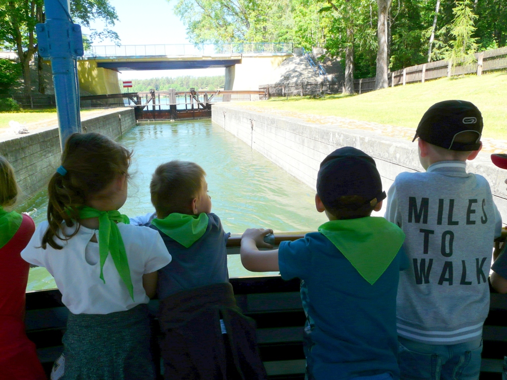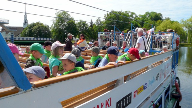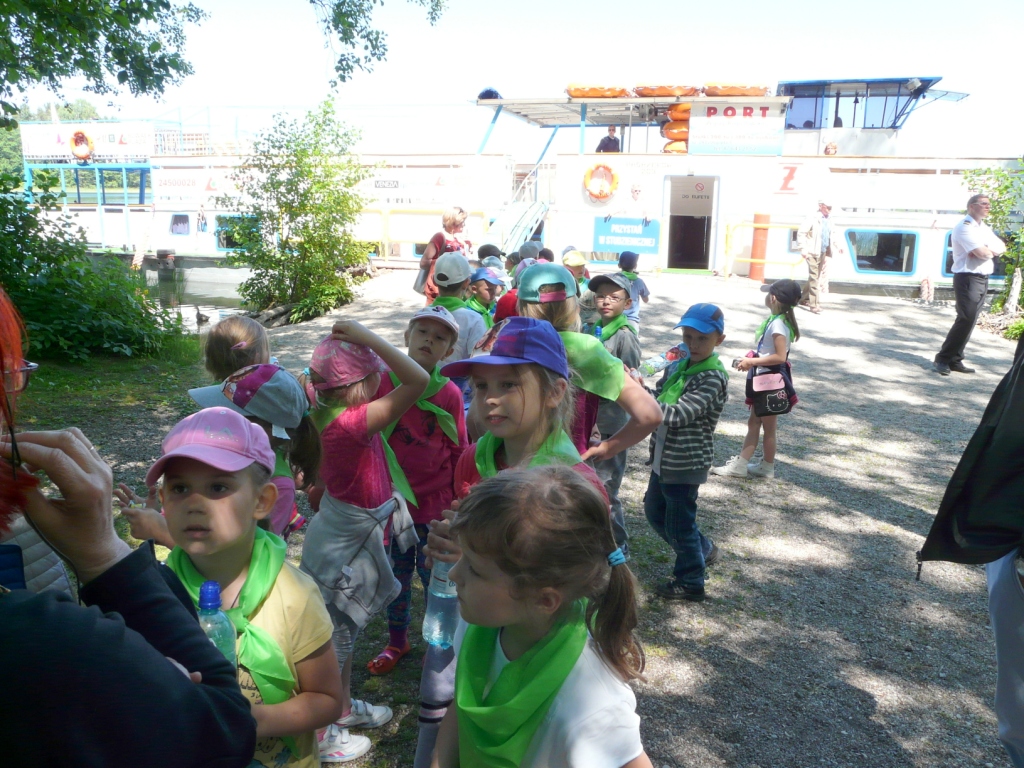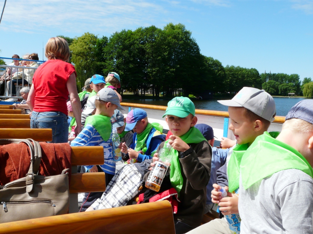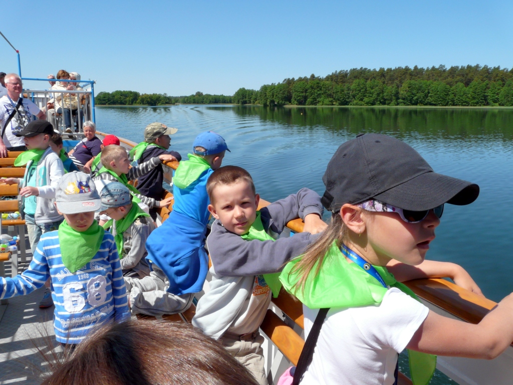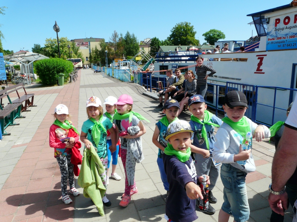 W dniu 10 czerwca klasy pierwsze pojechały na wycieczkę do Augustowa. Już od rana wszystkim dopisywały dobre humory, zwłaszcza, że zapowiadał się piękny, słoneczny dzień. Po dwugodzinnej podróży autokarem dzieci dotarły do Portu Żeglugi Augustowskiej, gdzie wsiadły na statek „Serwy”. W czasie rejsu pierwszaki podziwiały położone po obu stronach rzeki Netty bulwary, malownicze jeziora Necko i Białe, piękną mazurską przyrodę w jej nienaruszonym stanie. Szczególnie atrakcyjne było śluzowanie w Przewięzi. Po dopłynięciu do Studzienicznej zwiedziły Sanktuarium Maryjne: kapliczkę Najświętszej Marii Panny oraz cudowną studzienkę na wyspie jeziora Studzienicznego. Zorganizowane nieopodal ognisko z kiełbaskami pozwoliło zregenerować nadwątlone podczas turystycznego szklaku siły. Miłym akcentem na zakończenie wycieczki był pobyt w Regionalnym Centrum Rekreacji „Kaktusik” w Augustowie.