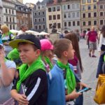 W dniu 22 maja dzieci z klas trzecich były na wycieczce w Warszawie. Realizację programu rozpoczęto od zwiedzania Telewizji Polskiej. Pierwszym pomieszczeniem obejrzanym „od kuchni” była reżyserka studia sportowego, stosunkowo niewielka, ale z dużą ilością różnorodnej aparatury i monitorów. Następnie grupa udała się do sali nagraniowej, gdzie trwała próba mikrofonowa przed programem „Od Opola do Opola”. Ogromnym przeżyciem było obejrzenie na żywo występu pani Stanisławy Celińskiej, która poświęciła chwilę na rozmowę z dziećmi, oraz grupy Pectus wykonującej utwór „Szczęście jest tak bardzo blisko”- muzycy również pozdrowili wycieczkę z Sokółki. Dzieciom spodobała się też sala muzealna, w której zgromadzono stare kamery, sprzęt nagraniowy, rekwizyty z różnorodnych programów oraz zabytkowe odbiorniki telewizyjne. Miłym akcentem na zakończenie pobytu w telewizji była rozmowa z dziennikarzem sportowym i prezenterem Teleexpressu panem Rafałem Patyrą. Drugim punktem wycieczki było zwiedzanie Starego Miasta. Pan przewodnik ciekawie opowiadał o zabytkowej architekturze Starówki z XVII i XVIII w., średniowiecznym układzie zabudowy oraz znaczeniu murów obronnych z XIV i XVI wieku. Uczniowie byli też pod Pomnikiem Małego Powstańca i dowiedzieli się, dlaczego na posąg zasłużył warszawski szewc Jan Kiliński. Po zaopatrzeniu się w niezbędne pamiątki, dzieci przeszły spacerkiem do dachowych ogrodów Biblioteki Uniwersytetu Warszawskiego. To miejsce unikatowe nie tylko ze względu na niezwykłe położenie, ale też ze względu na egzotyczne odmiany rosnących tam roślin. Niestety, nadciągająca burz skróciła pobyt w tym przepięknym ogrodzie. Ogromna ulewa nie popsuła wycieczkowych planów, gdyż w tym czasie uczniowie byli w Centrum Nauki Kopernik. Tu każdy mógł znaleźć dla siebie ciekawą ekspozycję, wykonać doświadczenie, przeprowadzić wirtualną operację, poznać budowę i możliwości ludzkiego ciała oraz poprzez zabawę zgłębić wiedzę z zakresu nauk ścisłych i przyrodniczych. Ostatnim punktem programu był posiłek w McDonaldzie. Powrót do Sokółki odbywał się w strugach deszczu, ale ze wspaniałymi humorami, bo wyjazd był atrakcyjny i bardzo udany. Dziećmi na wycieczce opiekowały się panie Barbara Chancewicz, Barbara Borowska, Marta Jóźwik i Ewa Harasimowicz.