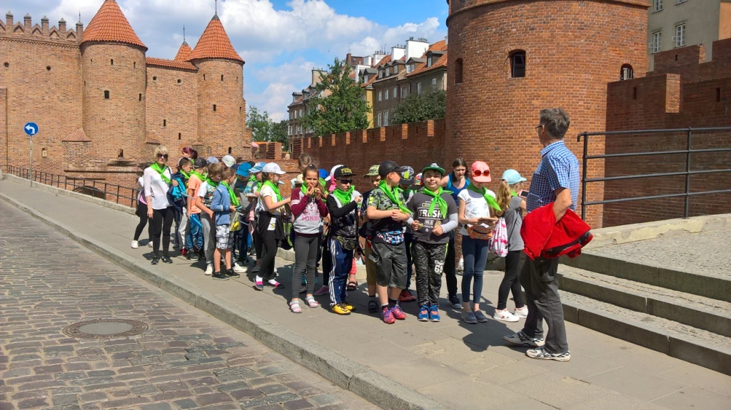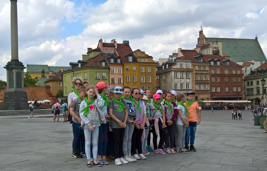 W dniu 22 maja dzieci z klas trzecich były na wycieczce w Warszawie. Realizację programu rozpoczęto od zwiedzania Telewizji Polskiej. Pierwszym pomieszczeniem obejrzanym „od kuchni” była reżyserka studia sportowego, stosunkowo niewielka, ale z dużą ilością różnorodnej aparatury i monitorów. Następnie grupa udała się do sali nagraniowej, gdzie trwała próba mikrofonowa przed programem „Od Opola do Opola”. Ogromnym przeżyciem było obejrzenie na żywo występu pani Stanisławy Celińskiej, która poświęciła chwilę na rozmowę z dziećmi, oraz grupy Pectus wykonującej utwór „Szczęście jest tak bardzo blisko”- muzycy również pozdrowili wycieczkę z Sokółki. Dzieciom spodobała się też sala muzealna, w której zgromadzono stare kamery, sprzęt nagraniowy, rekwizyty z różnorodnych programów oraz zabytkowe odbiorniki telewizyjne. Miłym akcentem na zakończenie pobytu w telewizji była rozmowa z dziennikarzem sportowym i prezenterem Teleexpressu panem Rafałem Patyrą. Drugim punktem wycieczki było zwiedzanie Starego Miasta. Pan przewodnik ciekawie opowiadał o zabytkowej architekturze Starówki z XVII i XVIII w., średniowiecznym układzie zabudowy oraz znaczeniu murów obronnych z XIV i XVI wieku. Uczniowie byli też pod Pomnikiem Małego Powstańca i dowiedzieli się, dlaczego na posąg zasłużył warszawski szewc Jan Kiliński. Po zaopatrzeniu się w niezbędne pamiątki, dzieci przeszły spacerkiem do dachowych ogrodów Biblioteki Uniwersytetu Warszawskiego. To miejsce unikatowe nie tylko ze względu na niezwykłe położenie, ale też ze względu na egzotyczne odmiany rosnących tam roślin. Niestety, nadciągająca burz skróciła pobyt w tym przepięknym ogrodzie. Ogromna ulewa nie popsuła wycieczkowych planów, gdyż w tym czasie uczniowie byli w Centrum Nauki Kopernik. Tu każdy mógł znaleźć dla siebie ciekawą ekspozycję, wykonać doświadczenie, przeprowadzić wirtualną operację, poznać budowę i możliwości ludzkiego ciała oraz poprzez zabawę zgłębić wiedzę z zakresu nauk ścisłych i przyrodniczych. Ostatnim punktem programu był posiłek w McDonaldzie. Powrót do Sokółki odbywał się w strugach deszczu, ale ze wspaniałymi humorami, bo wyjazd był atrakcyjny i bardzo udany. Dziećmi na wycieczce opiekowały się panie Barbara Chancewicz, Barbara Borowska, Marta Jóźwik i Ewa Harasimowicz.