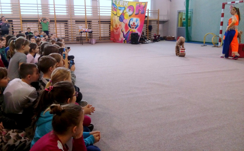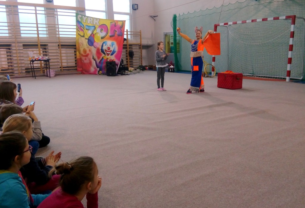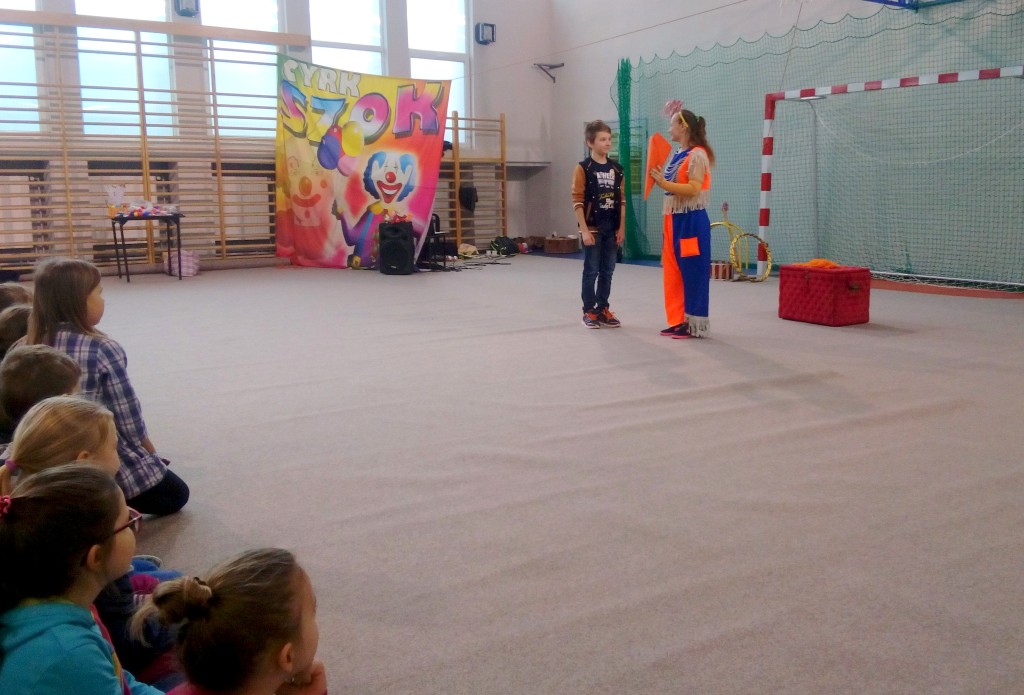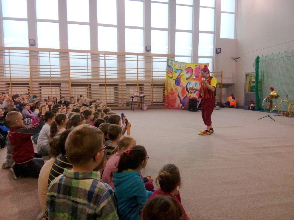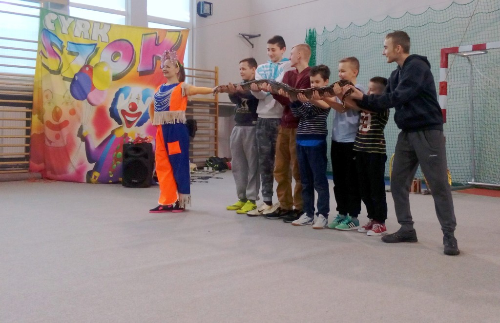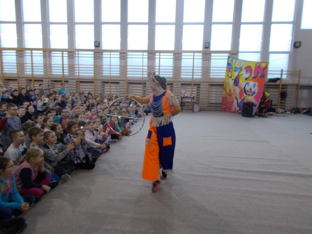 Dziś do naszej szkoły zawitał ukraiński cyrk „Szok”, zajmujący się już od piętnastu lat organizowaniem przedstawień cyrkowych dla dzieci i dorosłych. Ten cyrk różni się od innych tym, że nie przyjeżdża do miasta i nie rozkłada namiotu, tylko pojawia się dowolnym miejscu i czasie, tak jak dziś u nas. Występujący artyści – absolwenci szkół cyrkowych i laureaci wielu festiwali – nawiązali z publicznością bardzo dobrą relację, trafiając w gust i zapewniając doskonałą rozrywkę. Uczniom najbardziej podobały się zwierzęta: wąż, gołębie oraz psy. Dzieci były zadowolone nie tylko z popisów cyrkowców, ale też z faktu, że próbowały swych talentów, włączając się czynnie do zabawy. Śmiechu było co niemiara. Umiejętności cyrkowców wszystkim bardzo się podobały i zostały nagrodzone burzliwymi oklaskami.