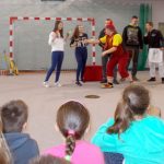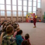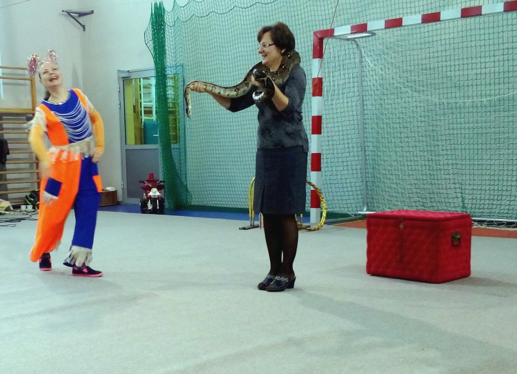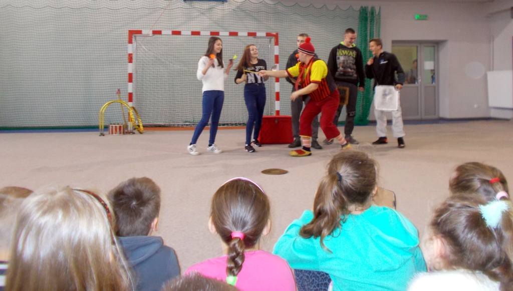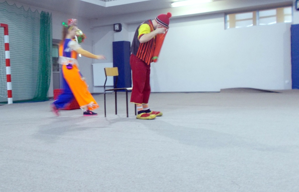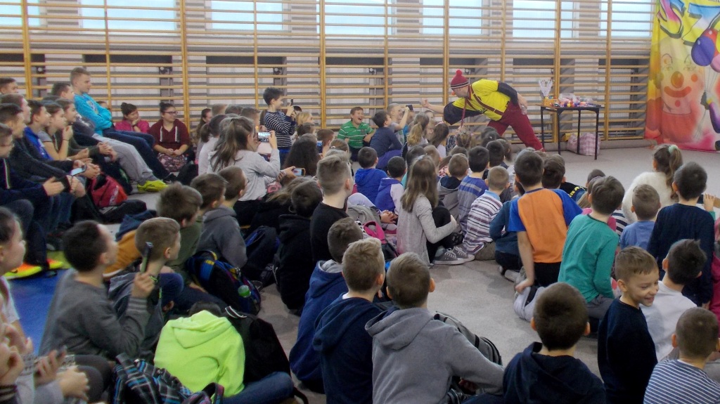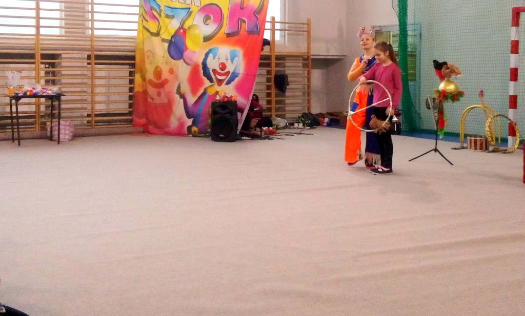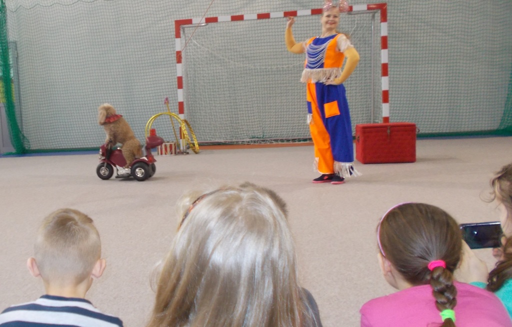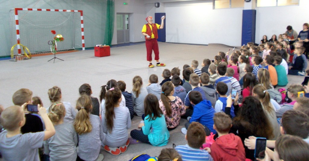 Dziś do naszej szkoły zawitał ukraiński cyrk „Szok”, zajmujący się już od piętnastu lat organizowaniem przedstawień cyrkowych dla dzieci i dorosłych. Ten cyrk różni się od innych tym, że nie przyjeżdża do miasta i nie rozkłada namiotu, tylko pojawia się dowolnym miejscu i czasie, tak jak dziś u nas. Występujący artyści – absolwenci szkół cyrkowych i laureaci wielu festiwali – nawiązali z publicznością bardzo dobrą relację, trafiając w gust i zapewniając doskonałą rozrywkę. Uczniom najbardziej podobały się zwierzęta: wąż, gołębie oraz psy. Dzieci były zadowolone nie tylko z popisów cyrkowców, ale też z faktu, że próbowały swych talentów, włączając się czynnie do zabawy. Śmiechu było co niemiara. Umiejętności cyrkowców wszystkim bardzo się podobały i zostały nagrodzone burzliwymi oklaskami.