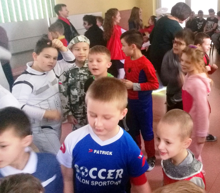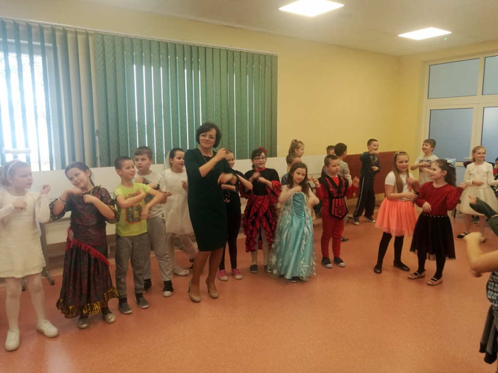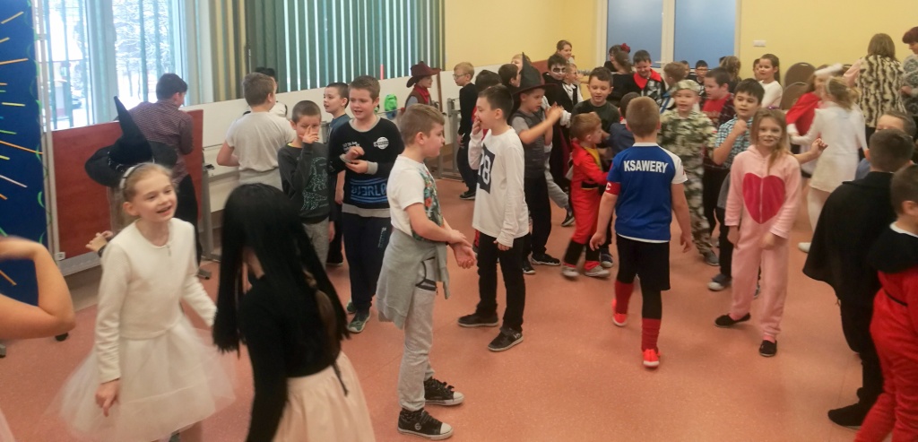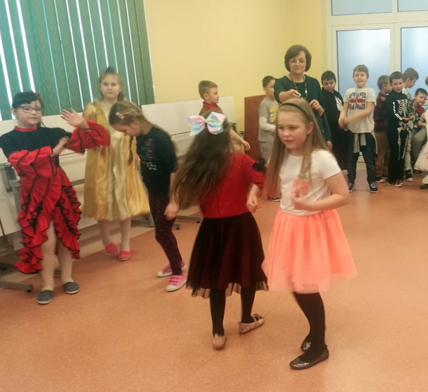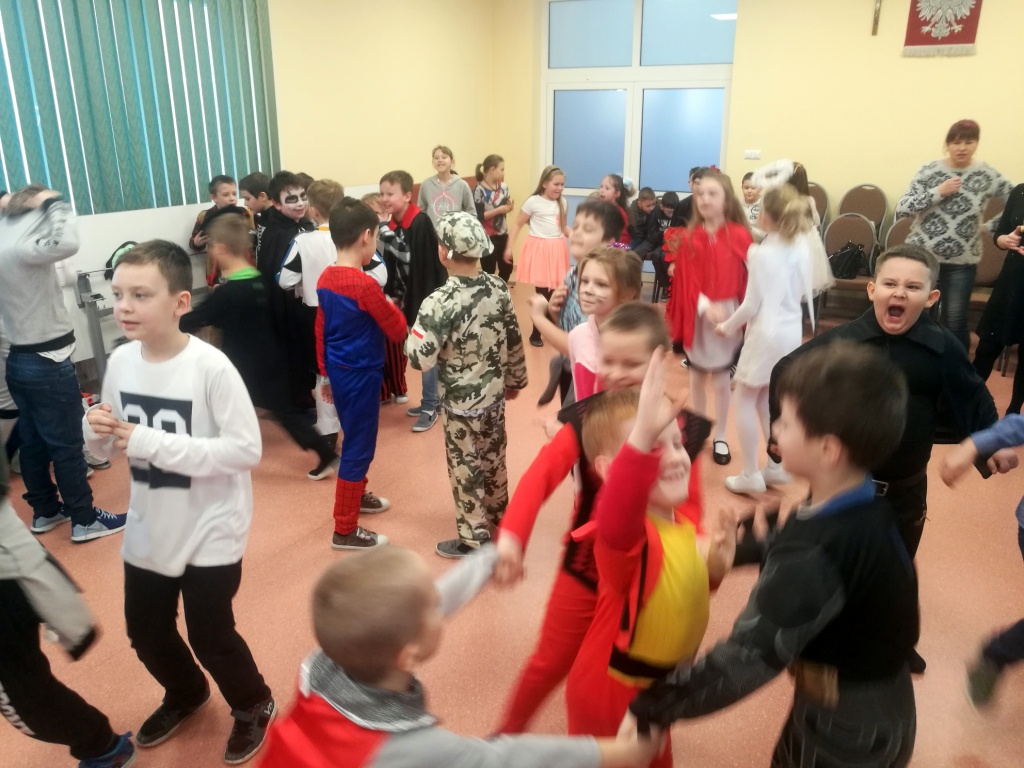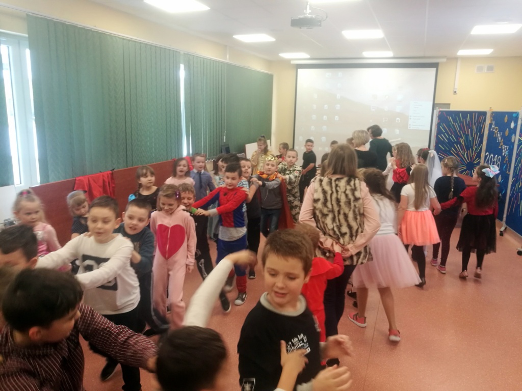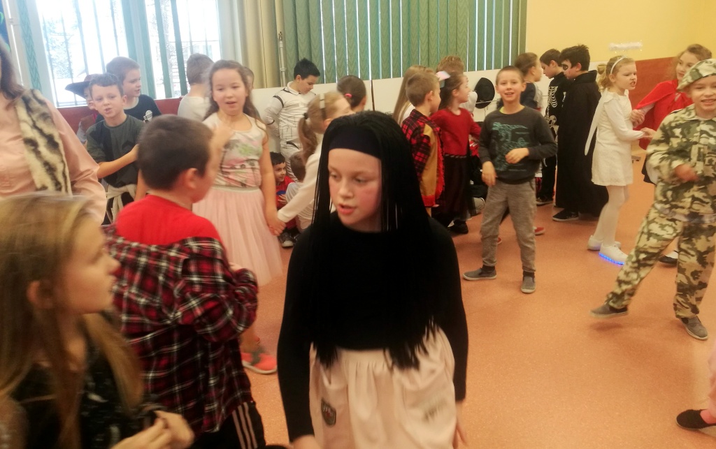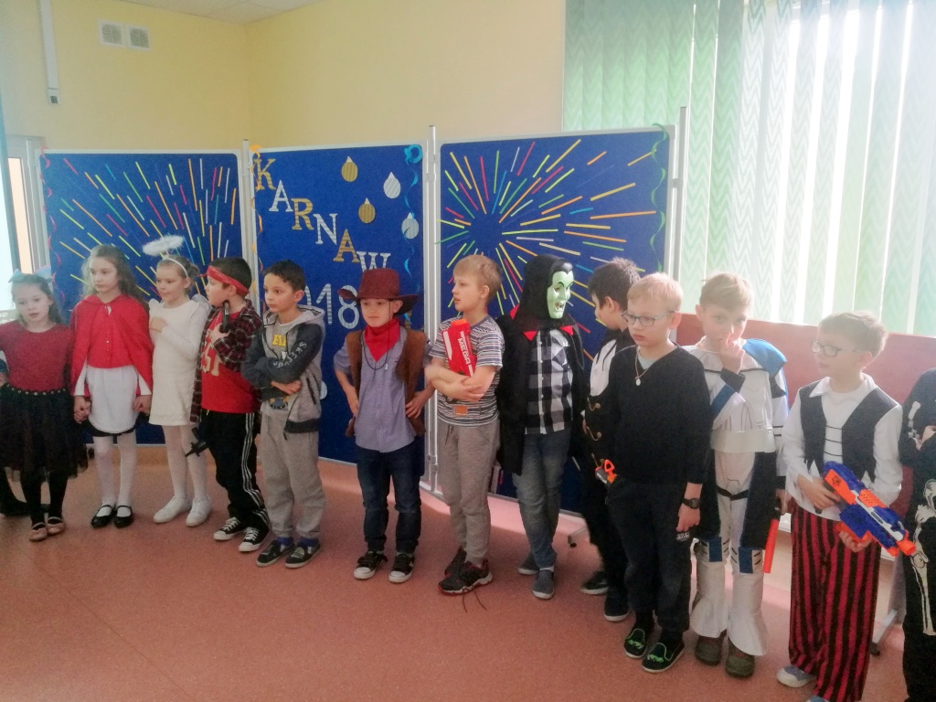 W dniu 18 stycznia dzieci z klas początkowych miały zabawę karnawałową. Chłopcy i dziewczynki przebrali się z tej okazji za bohaterów swoich ulubionych filmów, gier i książek. Na korytarzach można było spotkać wróżki, księżniczki, piratów, kowboi, aniołki, rycerzy, a nawet pannę młodą – nie sposób wyliczyć wszystkich barwnych i wesołych postaci. Na sali podczas pląsów robiło się kolorowo, wszyscy bawili się wesoło, uśmiech nie znikał z twarzy mimo chwilowego zmęczenia. Niektóre tańce były prowadzone przez dziewczynki z grupy tanecznej „Rytm”, ale większość tanecznych rytmów dzieci same wybierały, kierując się najnowszymi trendami w muzyce rozrywkowej. Dodatkową atrakcją był słodki poczęstunek, przygotowany w salach według pomysłów i inwencji dzieci oraz projekcja bajek. Na zakończenie balu wybrano królową i króla balu, którymi zostali Amelka Kostrzewska i Kacper Romanowicz.