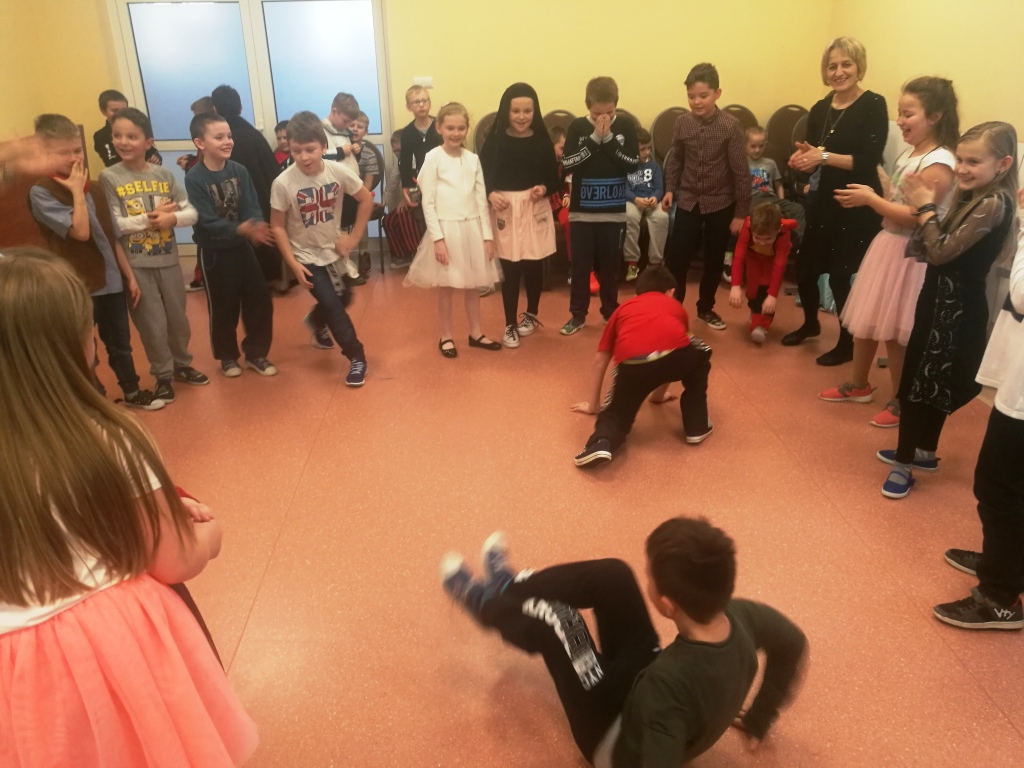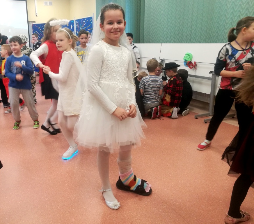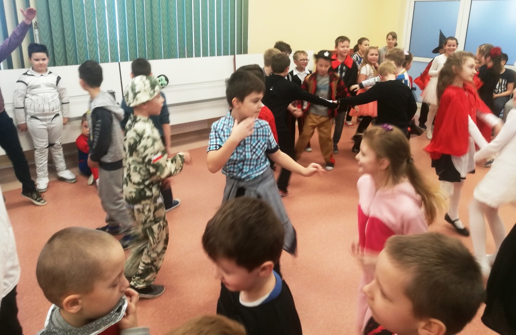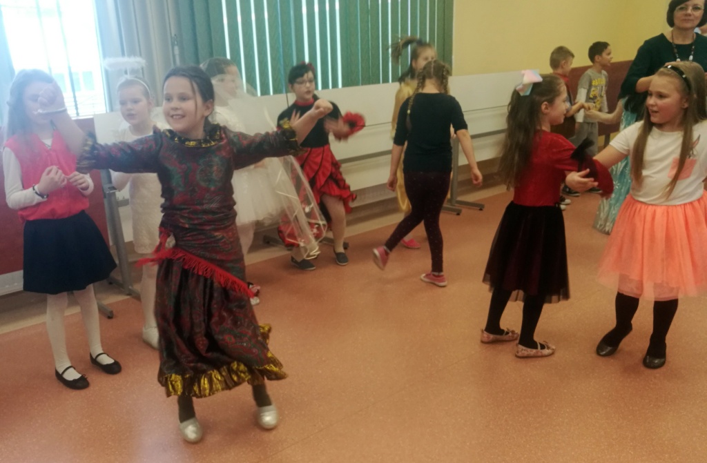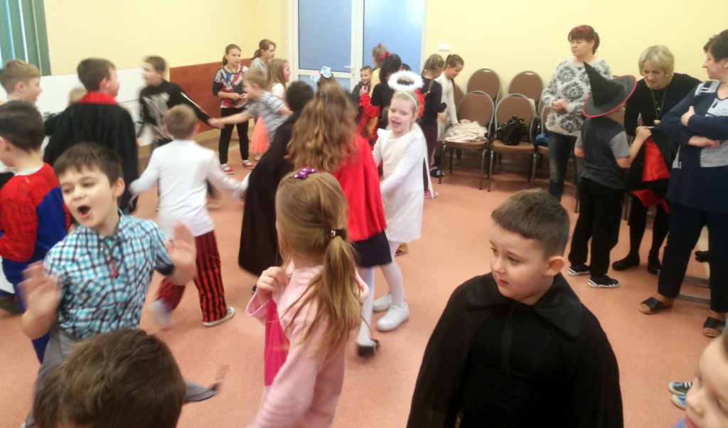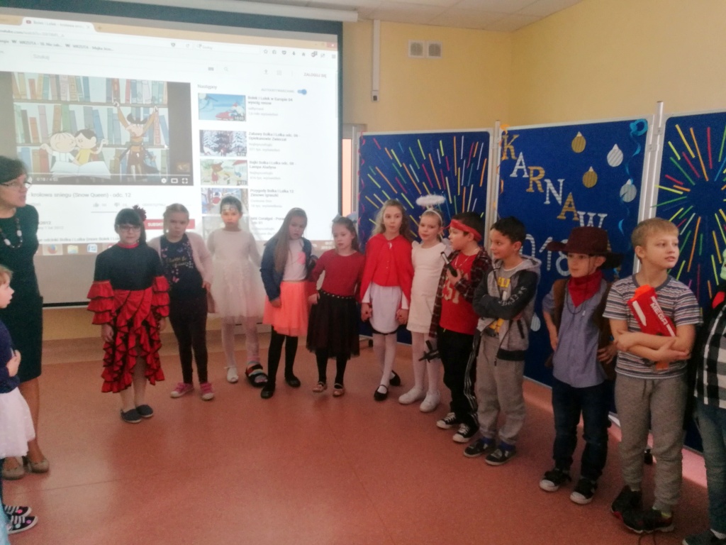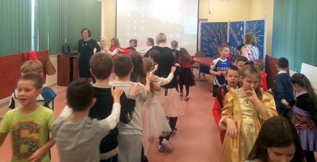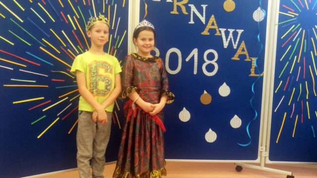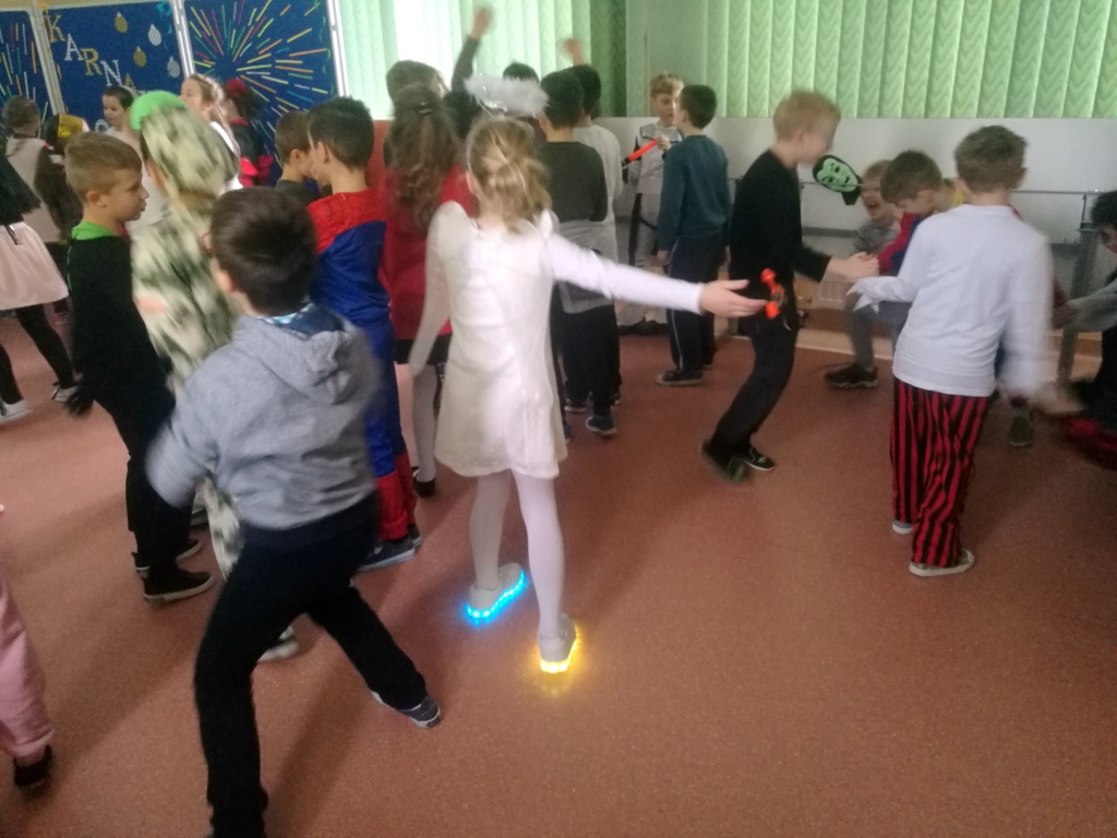 W dniu 18 stycznia dzieci z klas początkowych miały zabawę karnawałową. Chłopcy i dziewczynki przebrali się z tej okazji za bohaterów swoich ulubionych filmów, gier i książek. Na korytarzach można było spotkać wróżki, księżniczki, piratów, kowboi, aniołki, rycerzy, a nawet pannę młodą – nie sposób wyliczyć wszystkich barwnych i wesołych postaci. Na sali podczas pląsów robiło się kolorowo, wszyscy bawili się wesoło, uśmiech nie znikał z twarzy mimo chwilowego zmęczenia. Niektóre tańce były prowadzone przez dziewczynki z grupy tanecznej „Rytm”, ale większość tanecznych rytmów dzieci same wybierały, kierując się najnowszymi trendami w muzyce rozrywkowej. Dodatkową atrakcją był słodki poczęstunek, przygotowany w salach według pomysłów i inwencji dzieci oraz projekcja bajek. Na zakończenie balu wybrano królową i króla balu, którymi zostali Amelka Kostrzewska i Kacper Romanowicz.