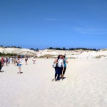 Drugi dzień wycieczkowy wymagał niezłej formy fizycznej uczestników, gdyż musieliśmy pokonać ok. 12- kilometrowy marsz nadmorskim brzegiem i pokonać ruchome wydmy w Słowińskim Parku Narodowym. Nie zabrakło śmiałków, którzy postanowili zaryzykować kąpiel w jeszcze chłodnych wodach Bałtyku. Po zakupie pamiątek i spacerze po Łebie przejechaliśmy do Władysławowa. Tam z portu rybackiego wypłynęliśmy w rejs po Morzu Bałtyckim a następnie na Alei Gwiazd Sportu każdy mógł odnaleźć gwiazdę swego sportowego idola.