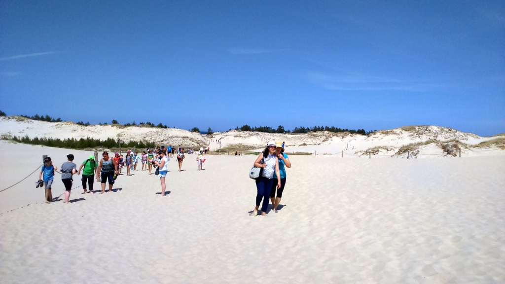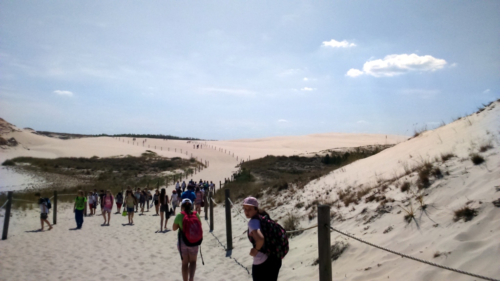 Drugi dzień wycieczkowy wymagał niezłej formy fizycznej uczestników, gdyż musieliśmy pokonać ok. 12- kilometrowy marsz nadmorskim brzegiem i pokonać ruchome wydmy w Słowińskim Parku Narodowym. Nie zabrakło śmiałków, którzy postanowili zaryzykować kąpiel w jeszcze chłodnych wodach Bałtyku. Po zakupie pamiątek i spacerze po Łebie przejechaliśmy do Władysławowa. Tam z portu rybackiego wypłynęliśmy w rejs po Morzu Bałtyckim a następnie na Alei Gwiazd Sportu każdy mógł odnaleźć gwiazdę swego sportowego idola.