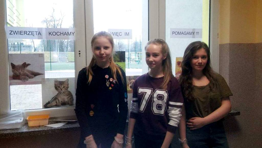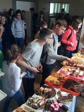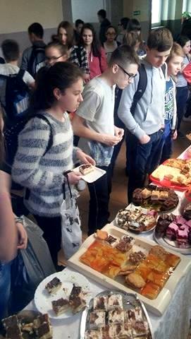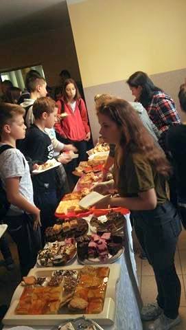 W naszej szkole postanowiliśmy w tym dniu połączyć przyjemne z pożytecznym organizując kiermasz ciast, aby pomóc zwierzętom z sokólskiego schroniska. Pomysłodawcą i organizatorem szkolnej akcji: „Zwierzęta kochamy więc im pomagamy” był Samorząd Uczniowski ZSO i Szkolne Koło Wolontariatu „Pomocna Dłoń”. Ich członkowie wykazali się ogromną chęcią niesienia pomocy zwierzętom, pokazali jak olbrzymie i wrażliwe mają serduszka. Dzięki nim w sprzedaży na ten szczytny cel mieliśmy ok. 45 rodzajów wypieków. Podziękowania należą się wspaniałym rodzicom, którzy wspierają nasze kiermasze, pomagają dzieciom w przygotowaniu ciast, dokonują ich zakupu. W tę akcję chętnie włączyła się cała społeczność uczniowska, a także nauczyciele i pracownicy szkoły. Wyróżnić należy postawę najmłodszych wolontariuszy z klas 1-3 SP. Oni to, pod opieką swych wychowawczyń, całymi klasami dokonywali zakupu słodkości przeznaczając na to swe oszczędności. Wszystko po to by pomóc pieskom.